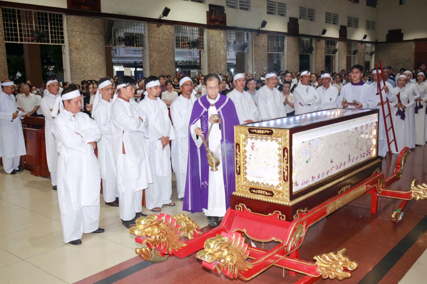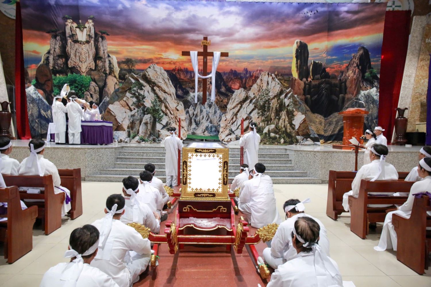 Nghi thức táng xác được cử hành trong bầu khí trang nghiêm và xúc động. Đoàn rước linh cữu Chúa tiến quanh thánh đường trong sự thinh lặng, như lời mời gọi mỗi người bước vào chiều sâu của mầu nhiệm cứu độ.