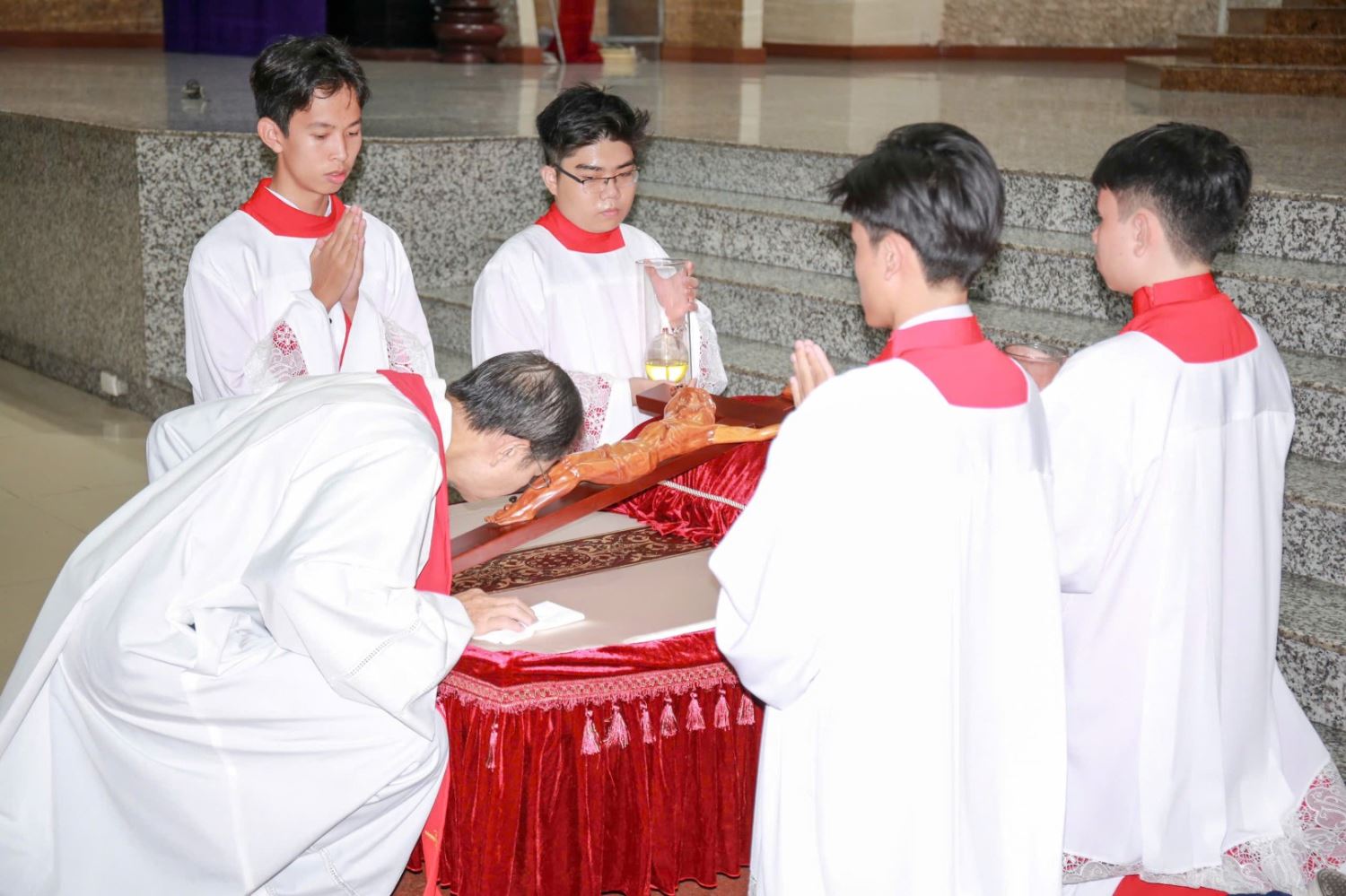 Hiệp cùng Giáo hội hoàn vũ, giáo xứ Tân Phú, giáo hạt Tân Sơn Nhì, đã long trọng cử hành các nghi thức phụng vụ Thứ Sáu Tuần Thánh trong bầu khí trang nghiêm, sốt sắng và đầy tâm tình.