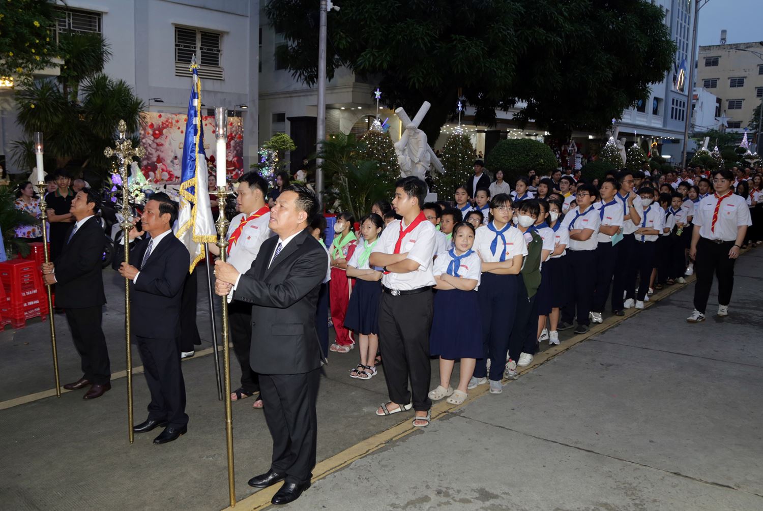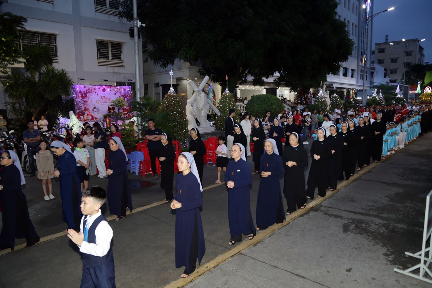 Trước Thánh lễ, cộng đoàn long trọng kiệu rước Chúa Hài Đồng quanh khuôn viên nhà thờ trong bầu khí trang nghiêm và sốt sắng. Ca đoàn không ngừng cất vang những bài ca mừng Chúa Giáng Sinh, ngợi khen Thiên Chúa.