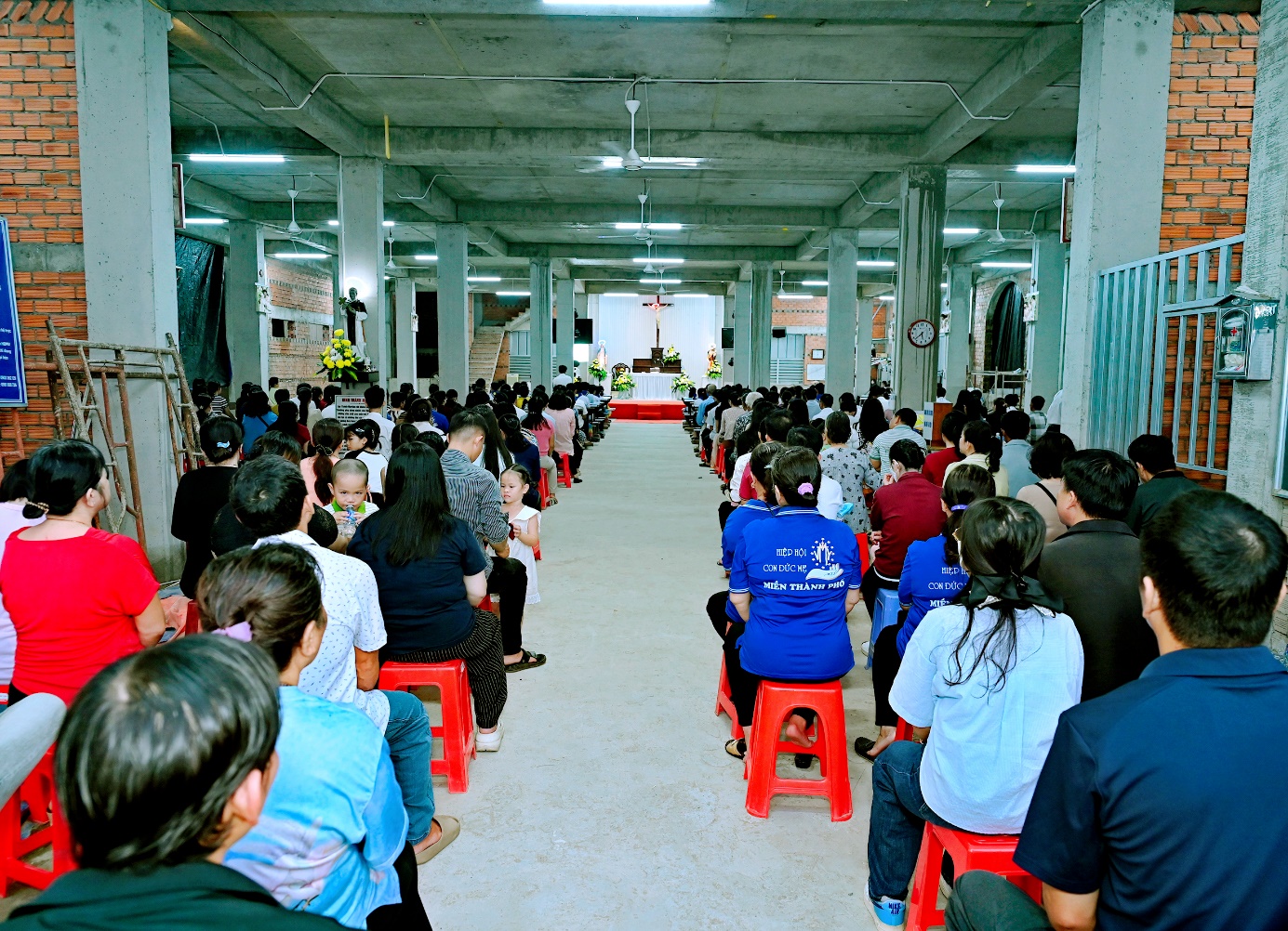 Lúc 17giờ, cộng đoàn cùng tham dự Thánh lễ Chúa nhật do Lm. Antôn Nguyễn Võ Triều Duy, chánh xứ Gò Đen, chủ tế. Tiếng hát, lời cầu nguyện hòa quyện trong khói hương và ánh nến, như nâng lời cảm tạ Thiên Chúa vì hồng ân hiệp nhất và sẻ chia.