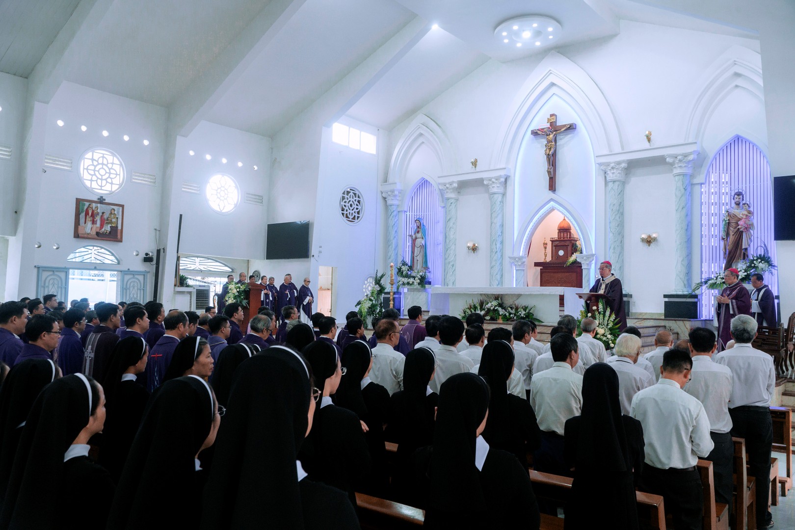 Hiệp dâng Thánh lễ có các tu sĩ và đông đảo giáo dân tham dự trong bầu khí trang nghiêm, sốt sắng, tưởng nhớ những người đã ra đi trước chúng ta.