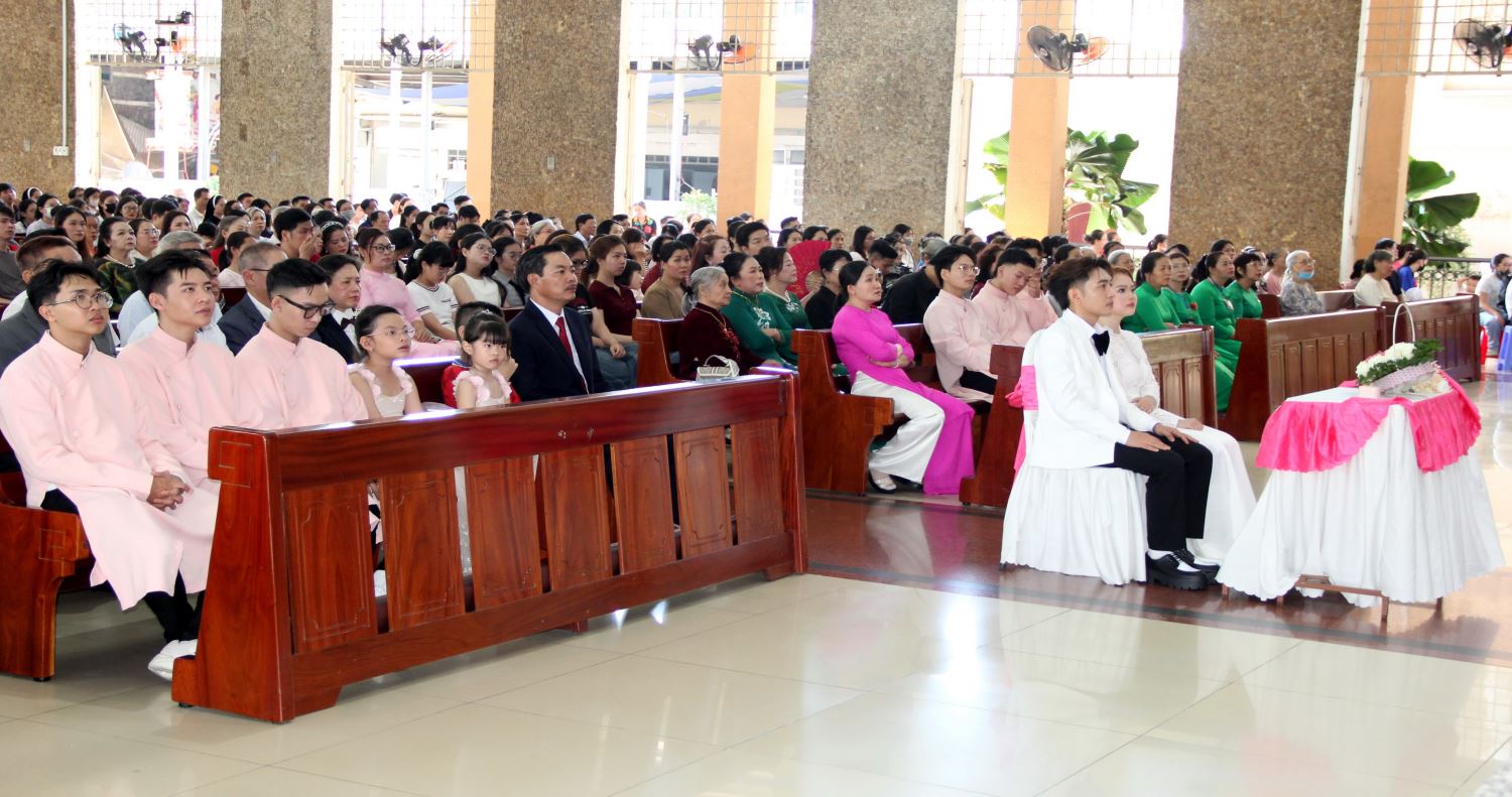 Trong Thánh lễ, cộng đoàn cũng hiệp ý cầu nguyện đặc biệt cho anh Giuse Phạm Văn Dũng và chị Têrêsa Nguyễn Thủy Tiên (tân tòng) trong ngày lãnh nhận Bí tích Hôn phối, như một hoa trái cụ thể của hành trình đức tin và của công cuộc truyền giáo nơi giáo xứ.