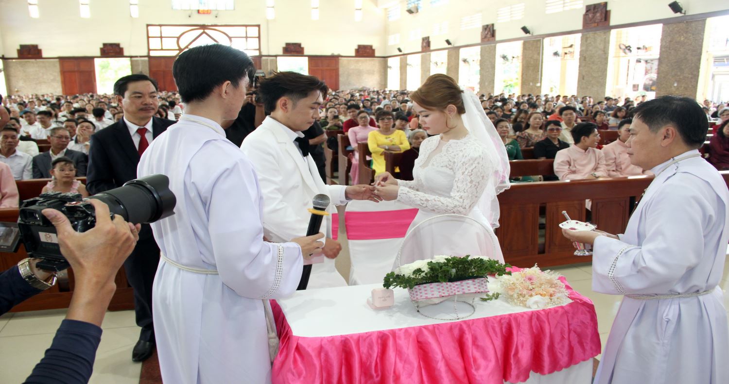 Thánh lễ tiếp tục với phần nghi thức Hôn phối và Phụng vụ Thánh Thể.