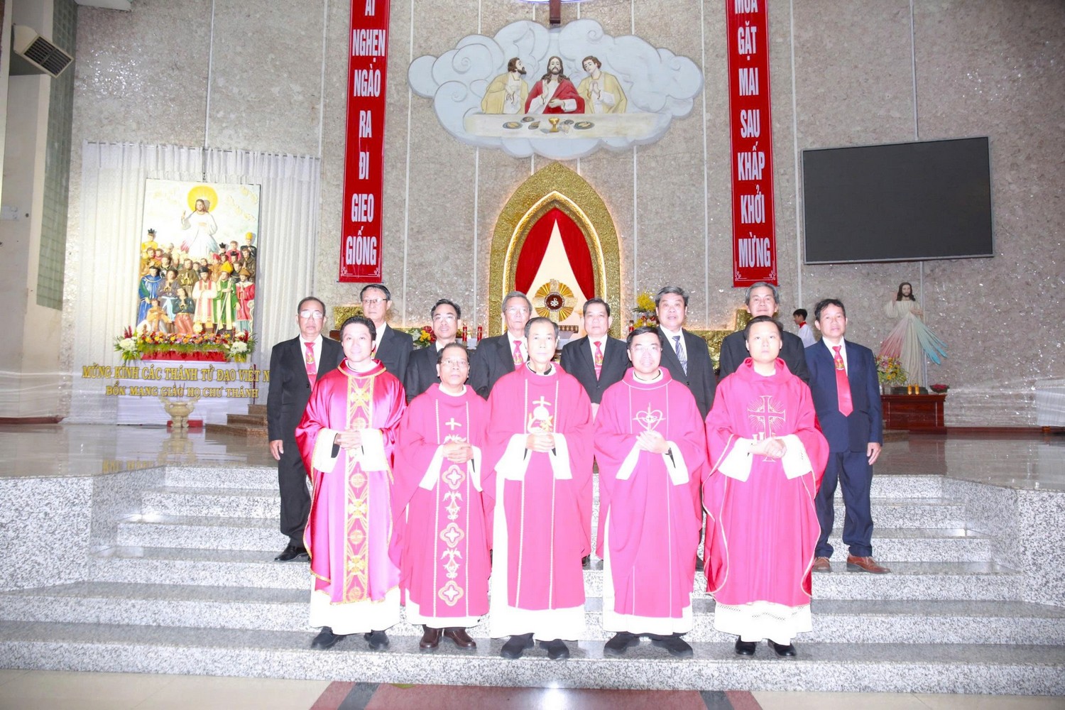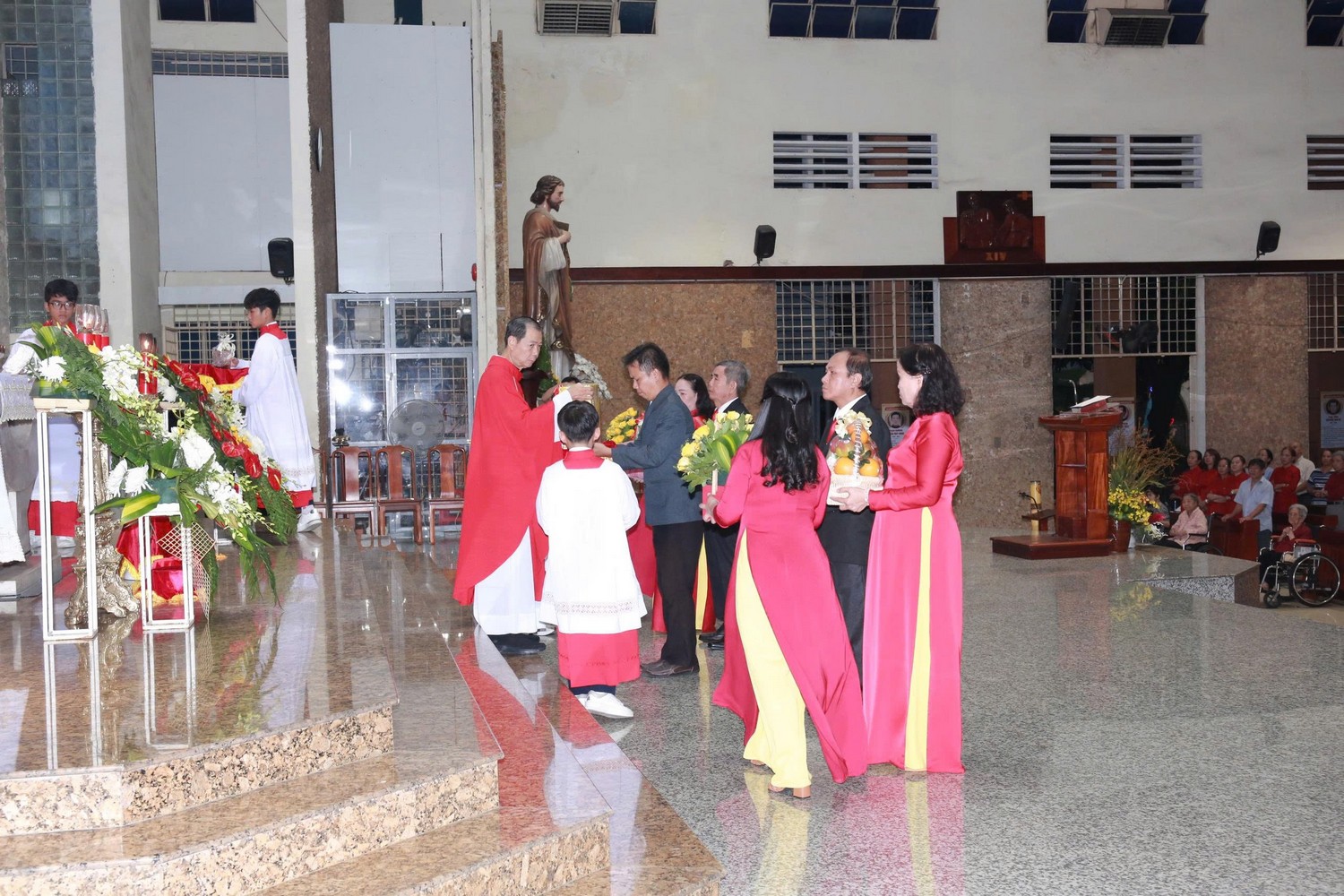 Hiệp dâng Thánh lễ có các tu sĩ nam nữ, Hội đồng Mục vụ giáo họ, các đoàn thể, các đội hoa của giáo xứ và giáo họ, cùng cộng đoàn dân Chúa.