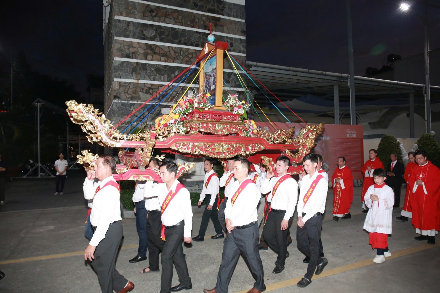 Trước Thánh lễ, vào lúc 17 giờ, có cuộc rước cung nghinh các Thánh Tử Đạo Việt Nam vòng quanh thánh đường trong tiếng hát hùng hồn ca ngợi gương anh dũng của các anh hùng Tử Đạo Việt Nam: Đây bài ca ngàn trùng…; Kìa đoàn người anh dũng từ muôn phương muôn lối tiến ra pháp trường…