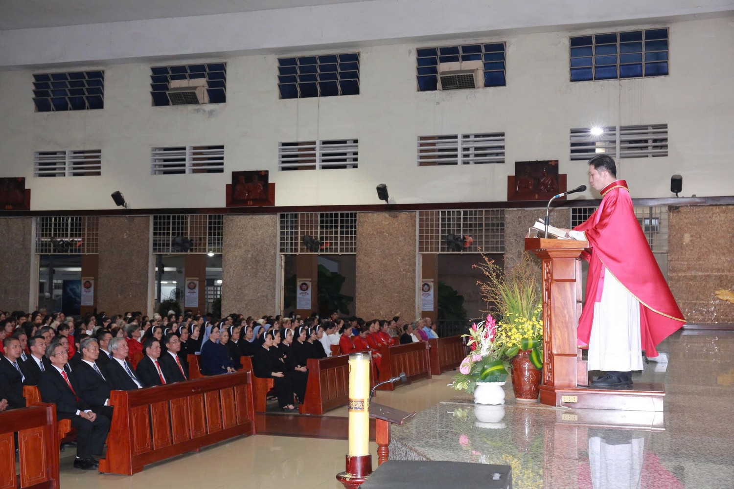 Cuộc rước đi vào nhà thờ, đoàn đồng tế tiến lên cung thánh. Lm chủ tế Giuse đã xông hương bàn thờ Các Thánh TĐVN một cách cung kính và bước vào Thánh lễ. Ngài nói:“Chiều nay, chúng ta quy tụ nơi đây để cảm tạ ơn Thiên Chúa vì Ngài đã ban cho Giáo hội Việt Nam những vị anh hùng chết trong vinh quang để làm chứng cho Chúa.”