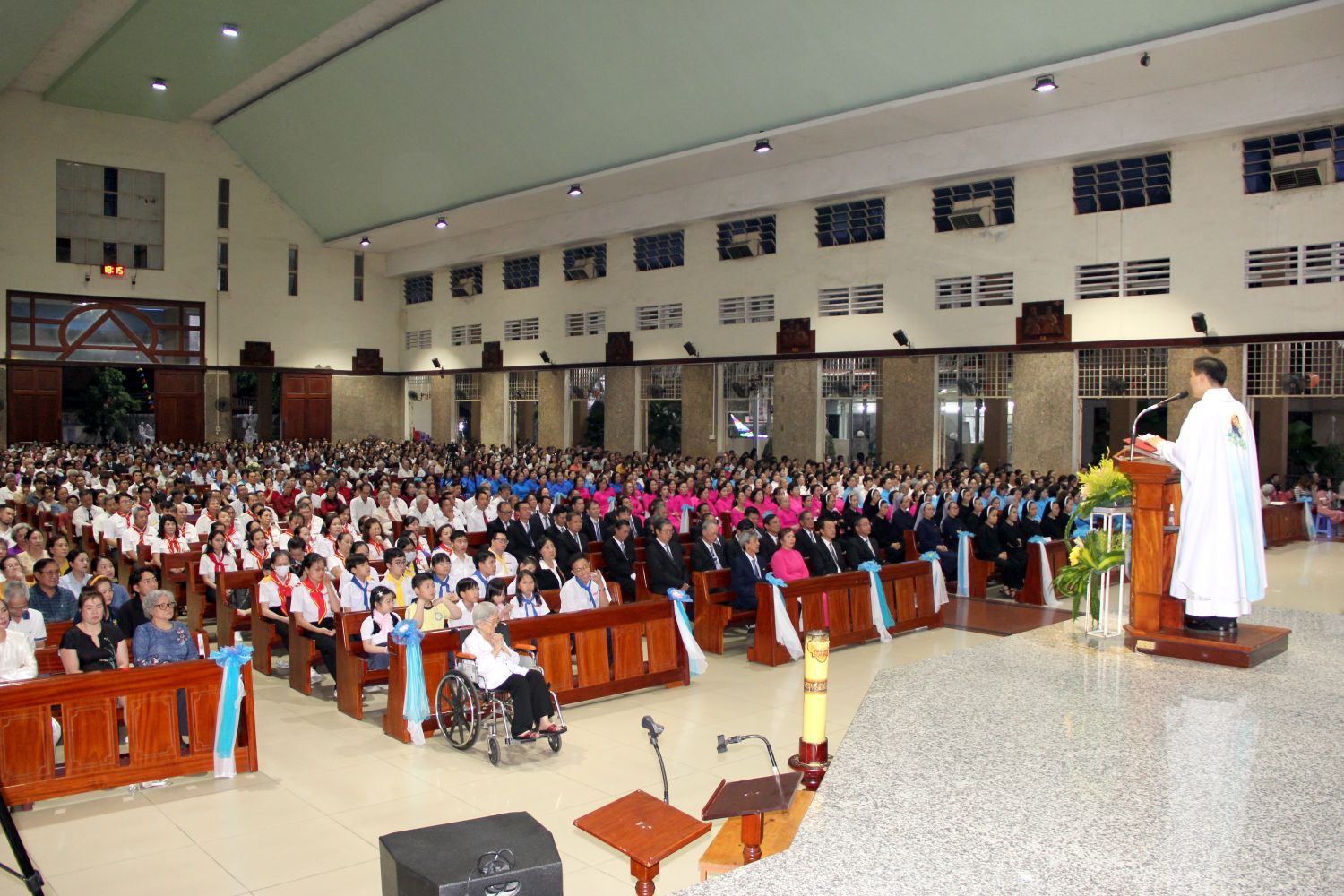 Vào lúc 7g, trong thời tiết tạnh ráo và mát mẻ, các đoàn thể và cộng đoàn dân Chúa đã quy tụ về trong nhiều màu cờ và sắc áo đồng phục để cung nghinh Mẹ Maria Vô nhiễm Nguyên tội.