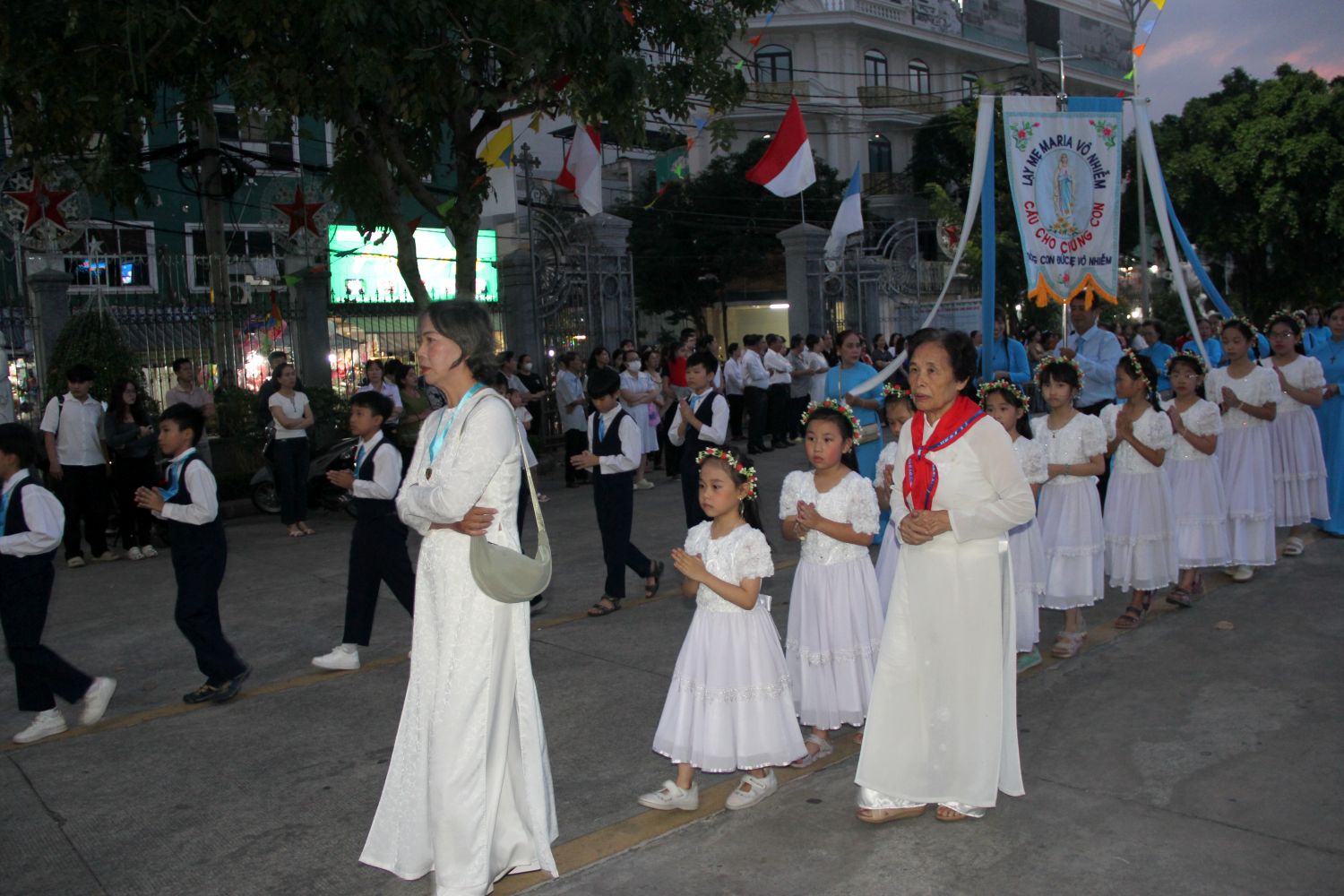 Sau khi Lm Chánh xứ Giuse cung kính xông hương Thánh tượng Mẹ, cuộc rước kiệu trang nghiêm, sốt sắng vòng quanh thánh đường và trở vào nhà thờ trong tiếng hát ca ngợi Mẹ Maria.