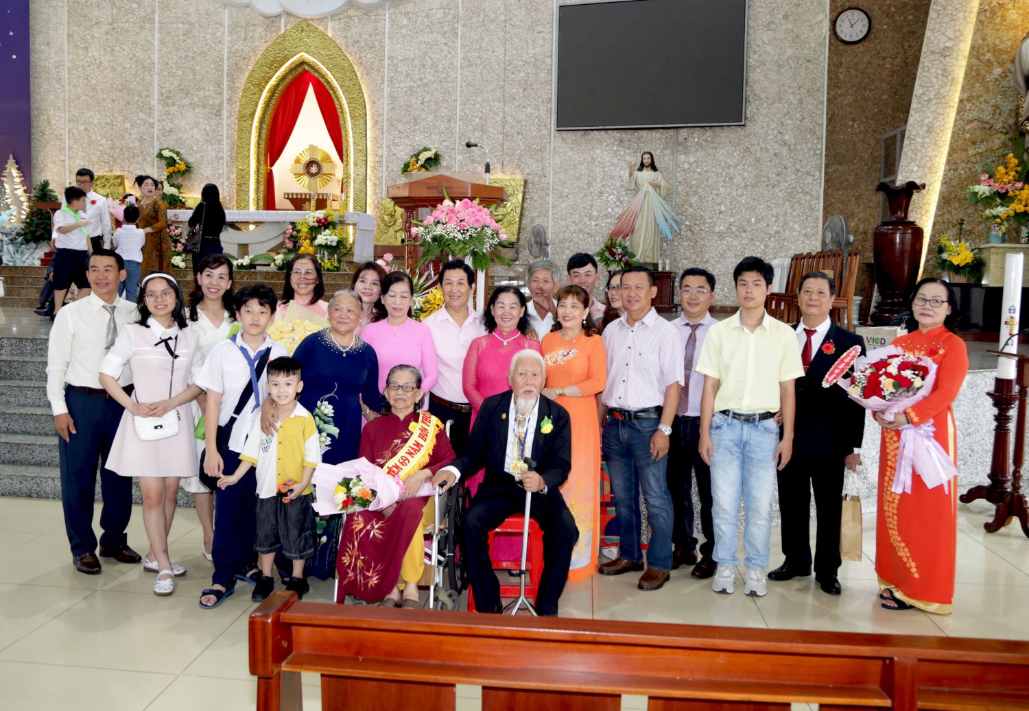 Nhiều người xúc động khi nhìn con cháu xúm xít bên ông bà, cha mẹ trong ngày lễ kỷ niệm. Ấn tượng nhất là đại gia đình có cha mẹ và người con cùng kỷ niệm Hôn phối cao niên nhất. Hồng phúc đó được thể hiện qua sự sum vầy chúc mừng nơi các cụ: