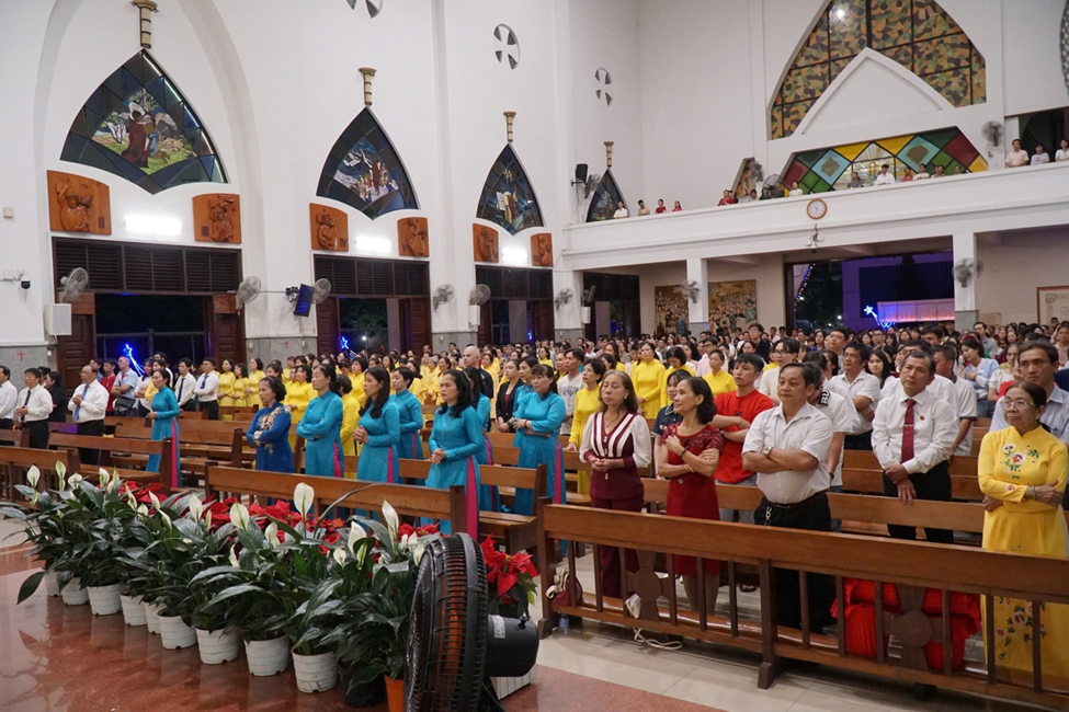 Trước đó, vào lúc 20g30, giáo xứ đã tổ chức đêm diễn Thánh ca Giáng Sinh, giúp cộng đoàn chuẩn bị tâm hồn và dẫn đưa mọi người bước vào niềm vui mừng Đại lễ Chúa Giáng Sinh.
