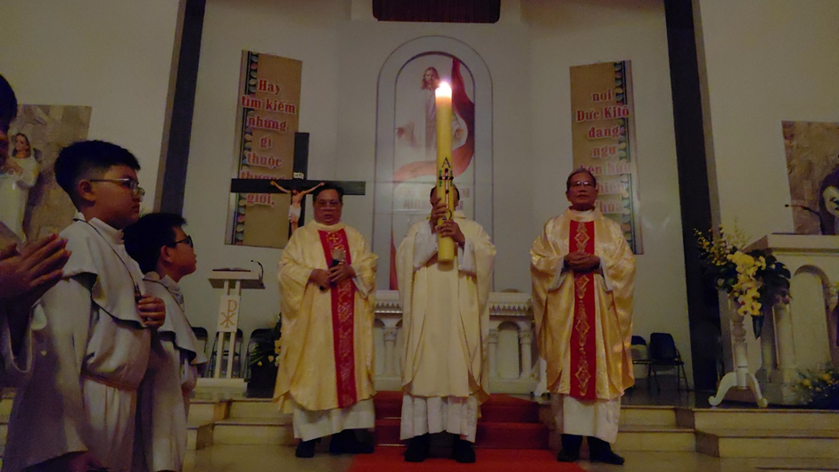 Linh mục chánh xứ Ignatiô Nguyễn Văn Đức đã nhấn mạnh điều này khi ngài chủ tế Thánh lễ Vọng Phục Sinh, cử hành lúc 19g30 ngày 04.04.2026 tại tại nhà thờ Tân Trang. Đồng tế với ngài có linh mục Carolo Vũ Anh Quốc, OP và linh mục Tôma Trần Văn Hội, nguyên chánh xứ, cùng sự tham dự đông đảo giáo dân trong giáo xứ.