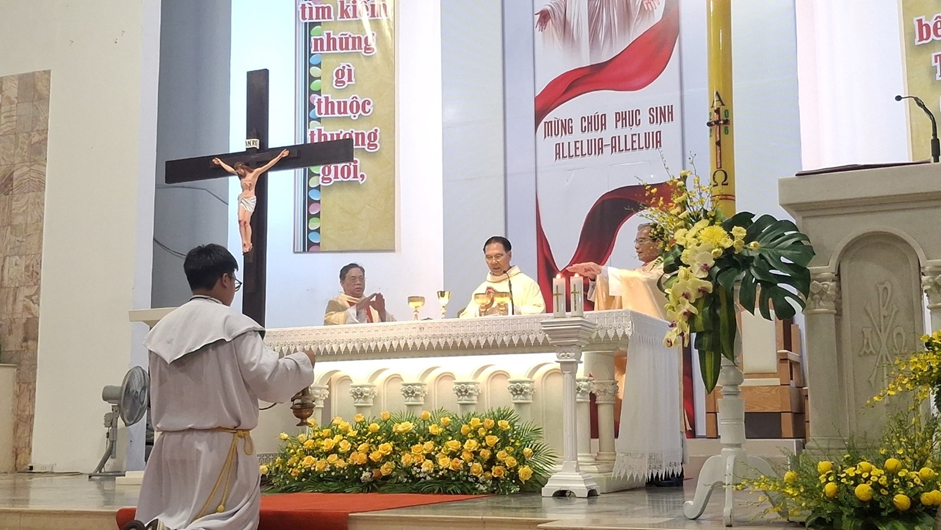 Thánh lễ tiếp nối với phần Phụng vụ Thánh Thể và kết thúc vào lúc 21g30 trong niềm vui mừng Chúa Phục Sinh của cộng đoàn.