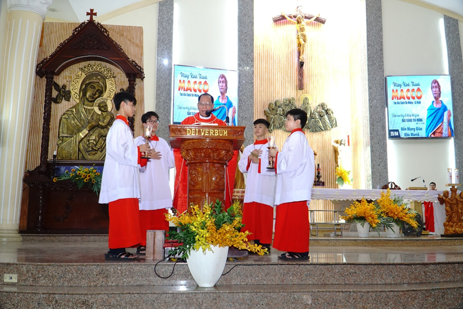 Trong bài giảng, linh mục Giuse chia sẻ: Thánh Marcô tuy không thuộc nhóm Mười Hai, nhưng là người cộng tác đắc lực với các tông đồ, đặc biệt là thánh Phêrô. Ngài đã ghi lại Tin Mừng cách ngắn gọn, súc tích nhưng đầy sức mạnh, làm nổi bật các hành động của Chúa Giêsu. Từ đó, mỗi người được mời gọi ý thức rằng ai cũng có thể trở thành người loan báo Tin Mừng, nếu biết cộng tác với ơn Chúa.