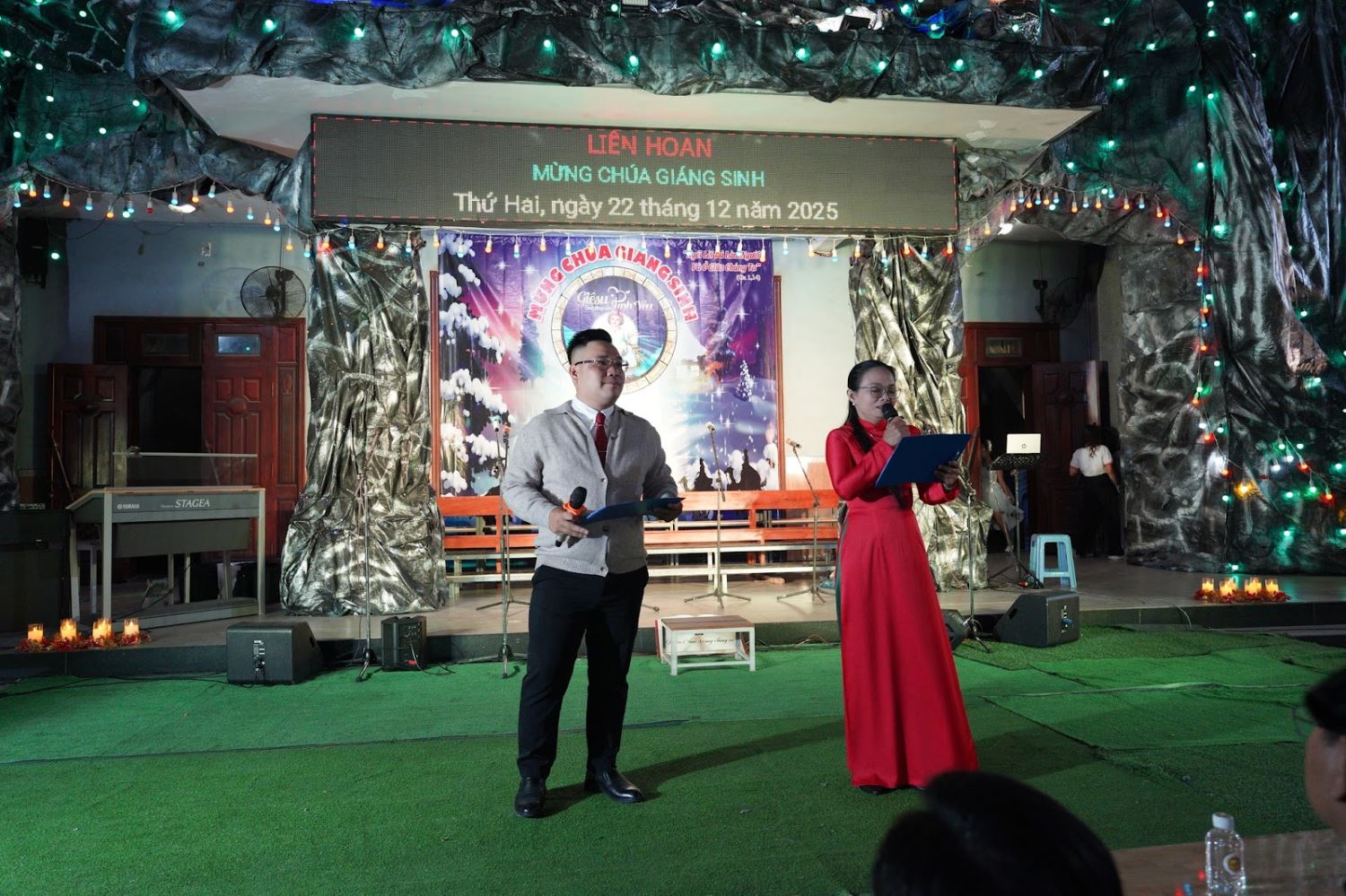 Song song với đó, chương trình văn nghệ “Niềm Vui Giáng Sinh” đã thắp sáng sân khấu bằng những tiết mục ca hát, múa diễn vui tươi và sâu lắng do các em thiếu nhi và các ca đoàn trình diễn. Những lời ca trong trẻo, những điệu múa hồn nhiên đã kể lại câu chuyện Giáng Sinh bằng âm nhạc và cảm xúc, đưa mọi người trở về với máng cỏ Bêlem trong niềm tin, niềm hy vọng và bình an.