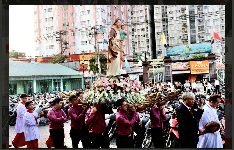 Trước Thánh lễ, cộng đoàn cùng các lih mục cung nghinh tượng thánh Giuse quanh khuôn viên nhà thờ và một đoạn đường Phạm Văn Chiêu, sau đó tiến vào cung thánh trong bầu khí trang nghiêm.