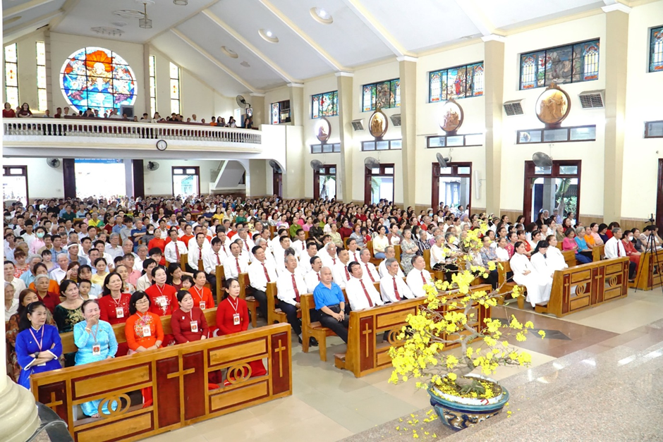 Tham dự Thánh lễ có các tu sĩ nam nữ và đông đảo giáo dân trong giáo xứ.