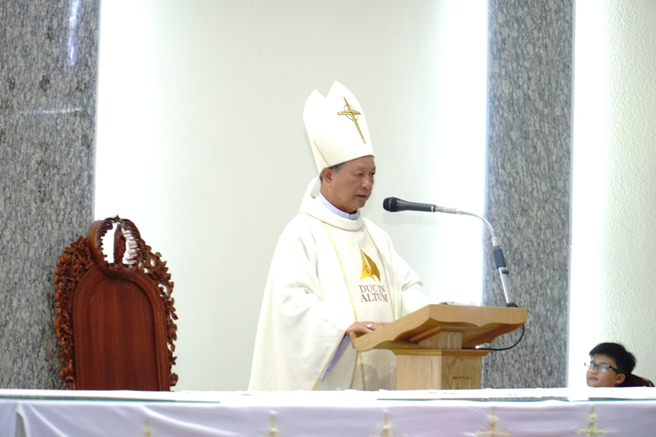 Cuối bài giảng, ngài gửi lời chúc Tết đến các linh mục, các tu sĩ và toàn thể cộng đoàn giáo dân giáo xứ Thạch Đà.