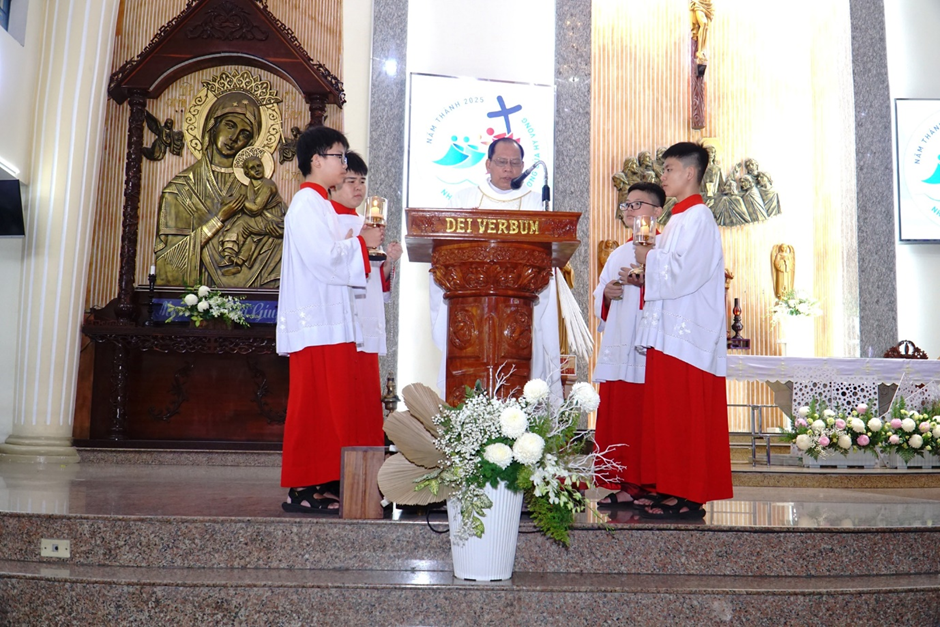 Đồng tế với ngài có linh mục phó xứ Gioan Baotixita Đặng Đức Duy Khang, linh mục Gioan Baotixita Nguyễn Qúy Hiển - Dòng Augustinô (Pháp), cùng sự hiện diện đông đảo giáo dân ngồi chật kín khuôn viên nhà thờ.