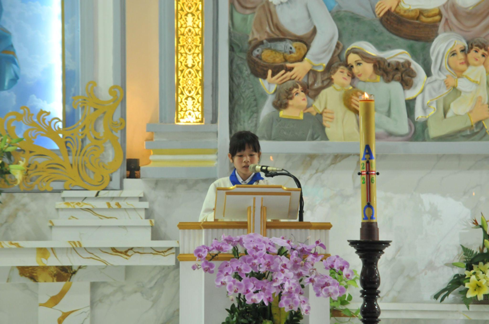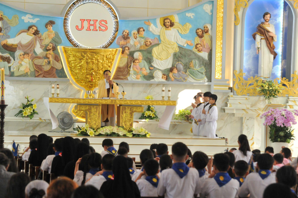 Hiệp dâng Thánh lễ có các em thiếu nhi, các giáo lý viên cùng đông đảo giáo dân trong giáo xứ.