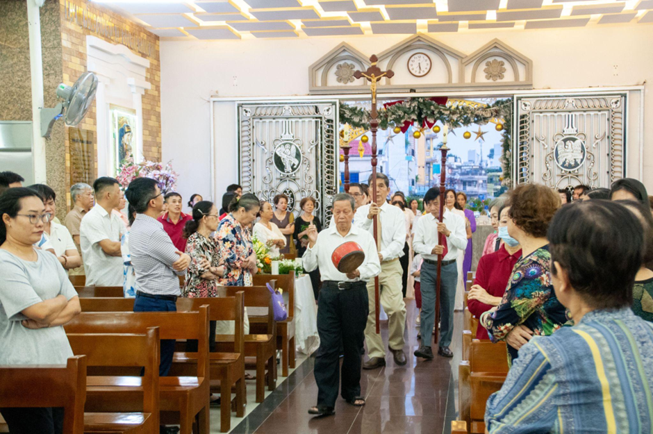 Thánh lễ bắt đầu với đoàn rước trang nghiêm từ cuối nhà thờ tiến lên cung thánh trong bầu khí sốt sắng.