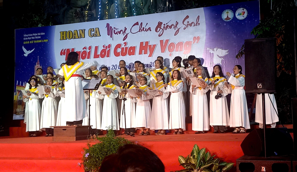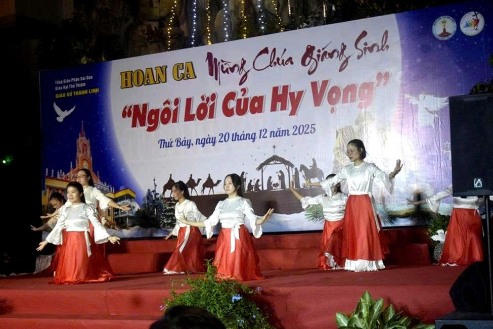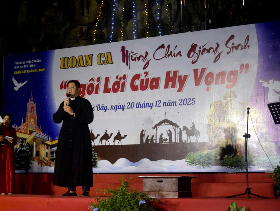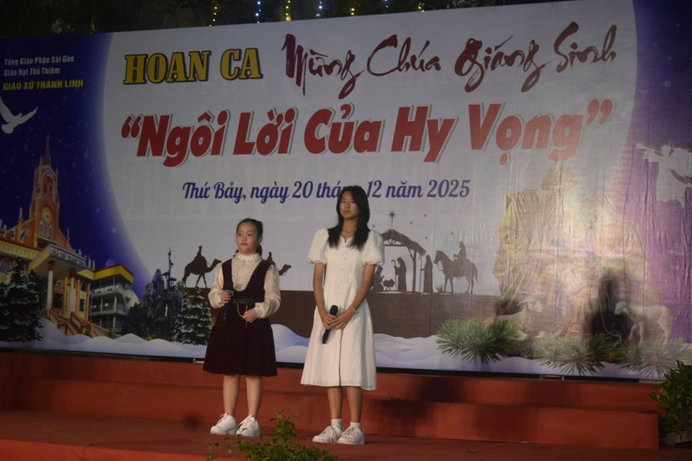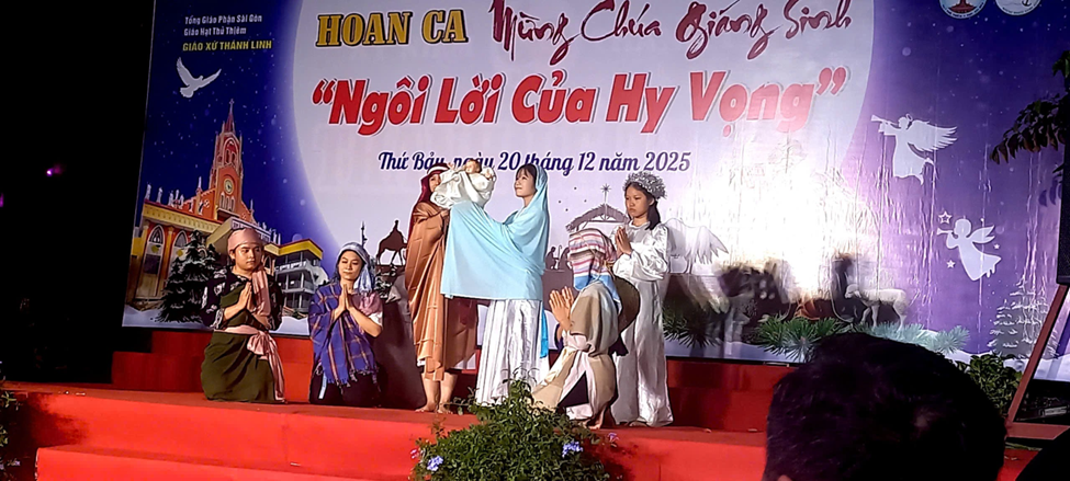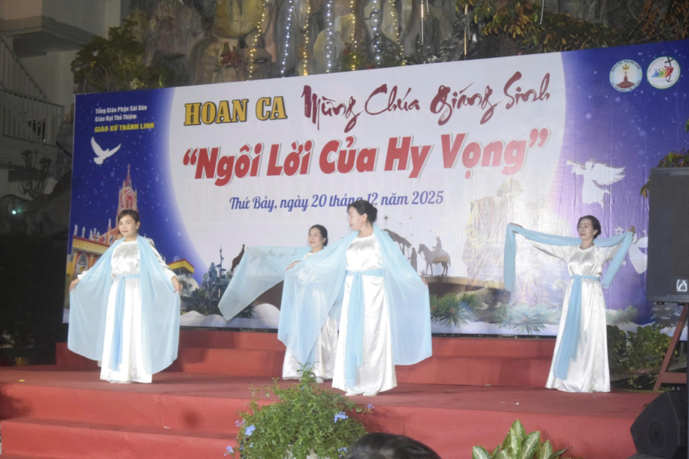 Niềm vui Giáng Sinh ấy lan tỏa khắp giáo xứ Thánh Linh, khi tối ngày 20.12.2025, cộng đoàn cùng quy tụ tại sảnh đường giáo xứ để tham dự Đêm Hoan Ca mừng Chúa Giáng Sinh 2025 với chủ đề “Ngôi Lời của Hy Vọng”. Đêm diễn không chỉ là một chương trình thánh ca, nghệ thuật, mà còn là lời tuyên xưng đức tin sống động, thắp lên niềm hy vọng Kitô giáo giữa đời sống hôm nay.