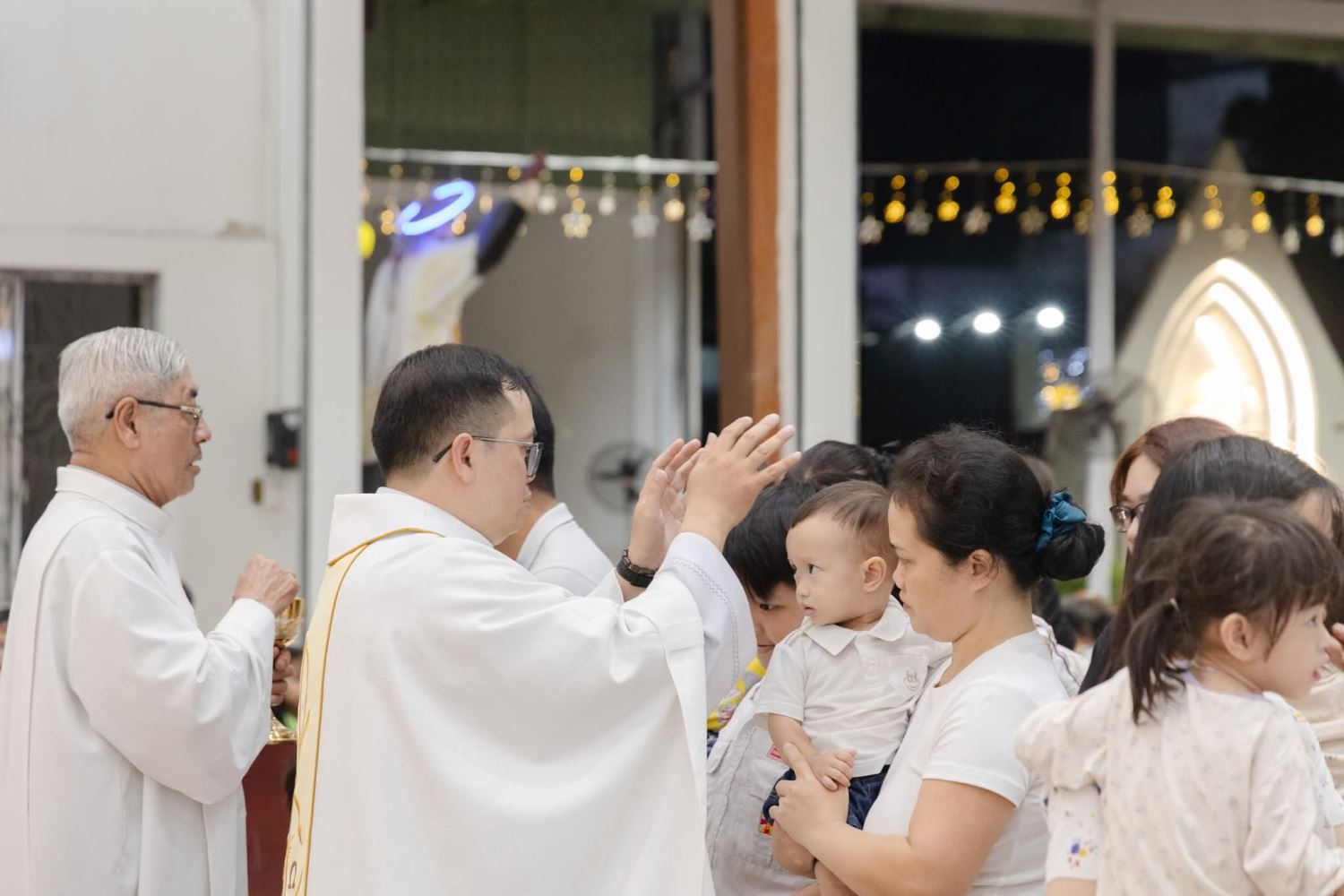 Mở đầu Thánh lễ, sau lời nguyện nhập lễ, Lm chủ tế Giuse đã làm phép các cây nến mới. Những cây nến này sẽ được thắp sáng trong các buổi đọc kinh gia đình, như một dấu chỉ nhắc nhớ sự hiện diện của Thiên Chúa và ánh sáng đức tin trong mỗi gia đình Kitô hữu.