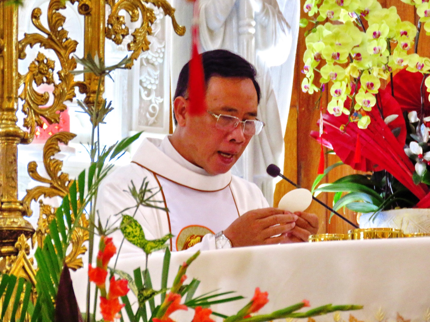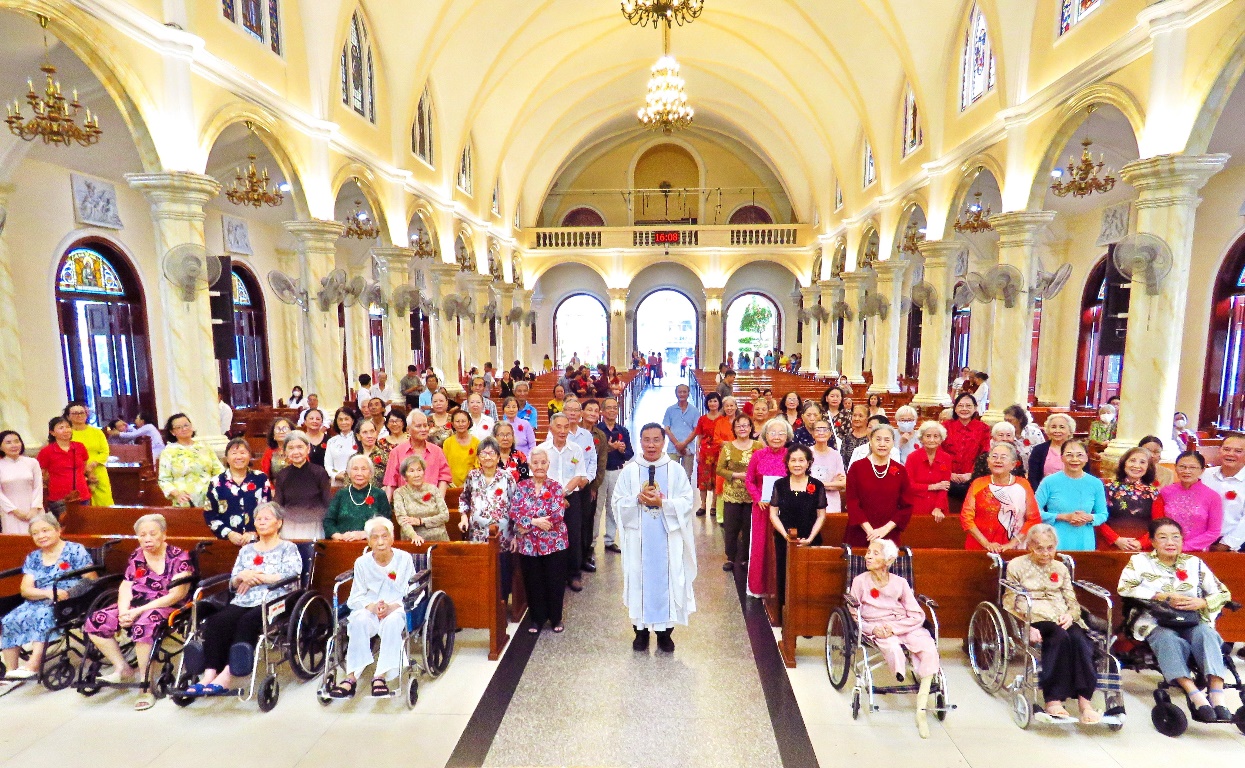 Trong giáo xứ có 440 cụ từ 70 tuổi trở lên được mừng thọ. Hôm nay chỉ khoảng một phần ba hiện diện, có lẽ vì tuổi cao sức yếu hoặc không được con cháu đưa đến nhà thờ. Cha chủ tế đã trao Mình Thánh Chúa cho các cụ tham dự.
