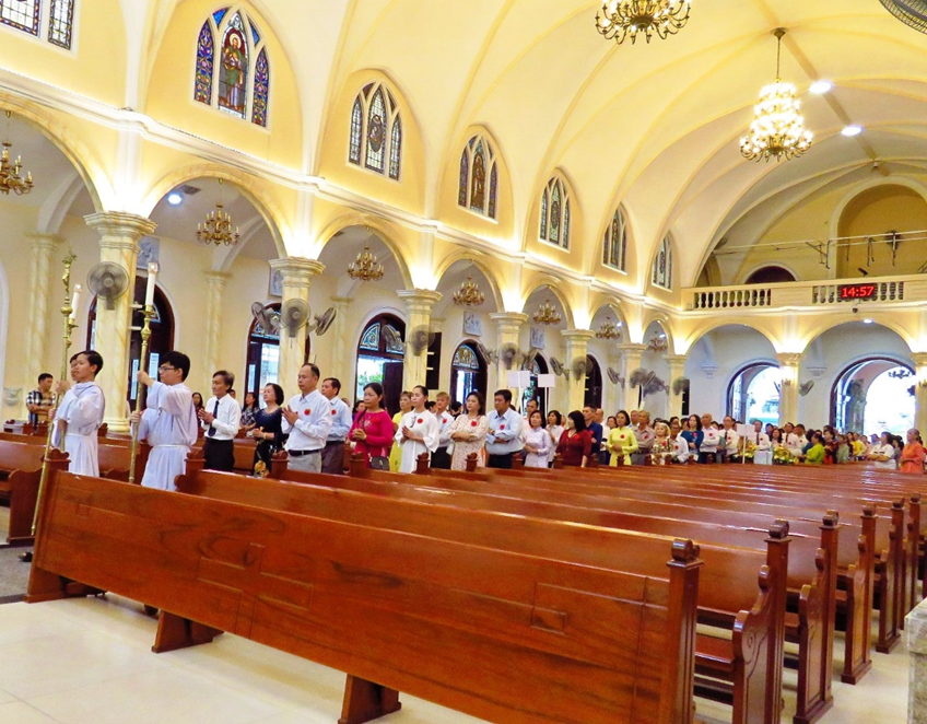 Thánh lễ khởi sự với đoàn rước từ cuối nhà thờ tiến lên cung thánh.