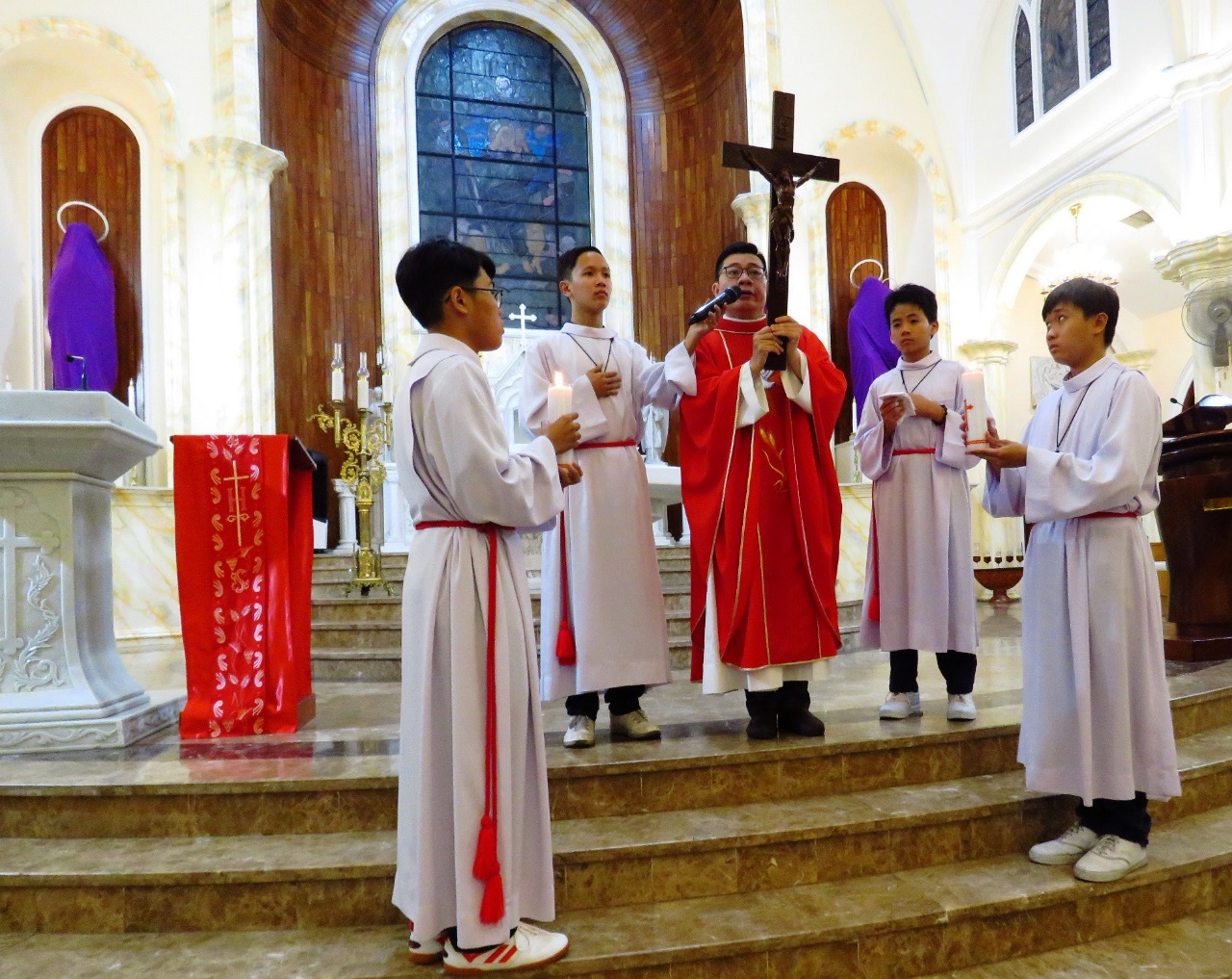 Vào đầu nghi thức, cha phó Antôn đã tiến ra cung thánh, quỳ trước bàn thờ trong thinh lặng, suy niệm về cuộc Thương khó Chúa Giêsu.
