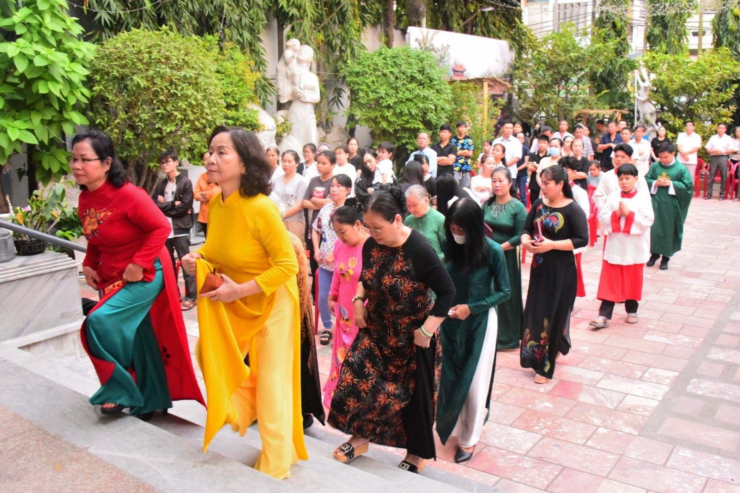 Khởi đầu Thánh lễ với đoàn rước linh mục chủ tế từ trước sân nhà thờ vào trong thánh đường do đại diện giáo họ Phaolô và các em Ban Lễ sinh phụ trách.