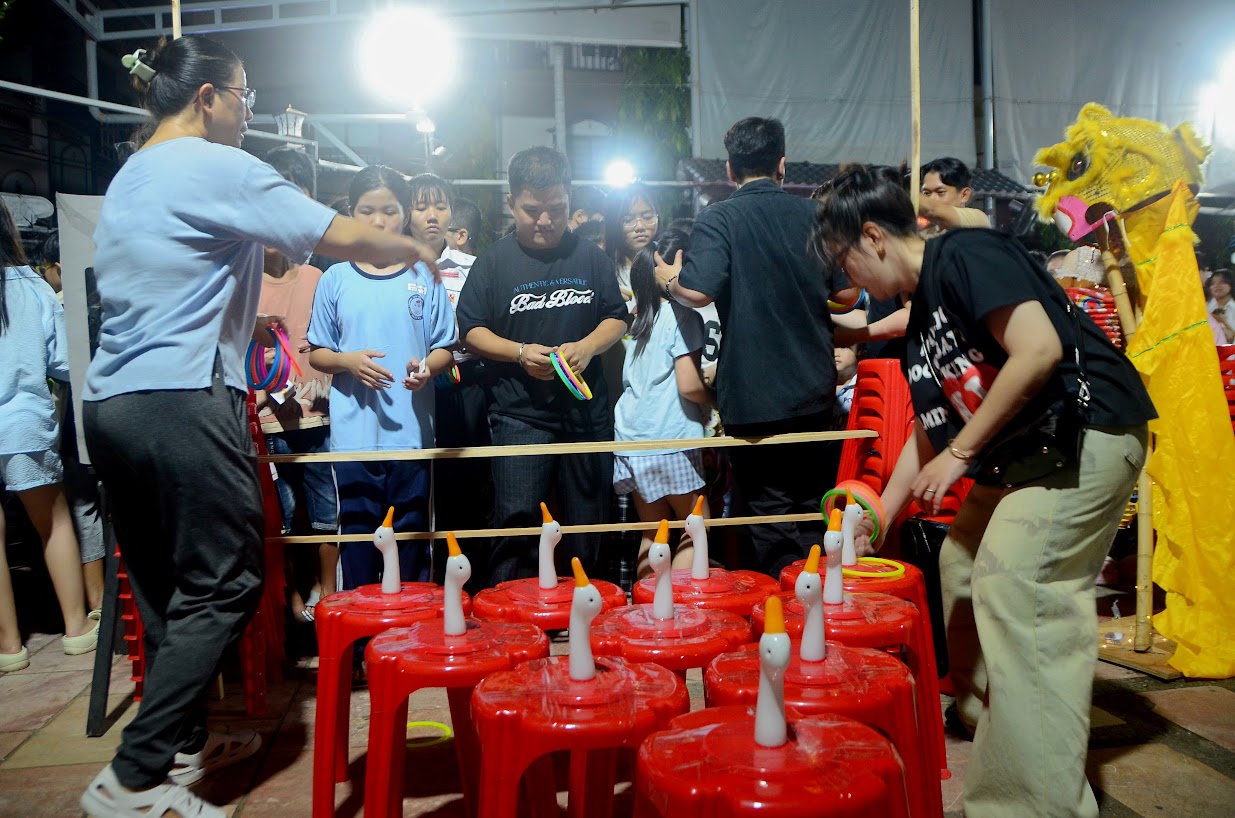 Mở đầu chương trình là tiết mục múa lân do các em trong Ban Lễ sinh biểu diễn, mang đến không khí sôi động và ấn tượng. Tiếp đó, các em thiếu nhi với những tấm phiếu trên tay tiến đến các gian hàng trò chơi mang tên: Ánh trăng trong đêm, Mũ lưỡi câu, Thổi bóng trăng, Ném vòng, Lân ơi lân đâu rồi và Ánh trăng tuổi thơ.