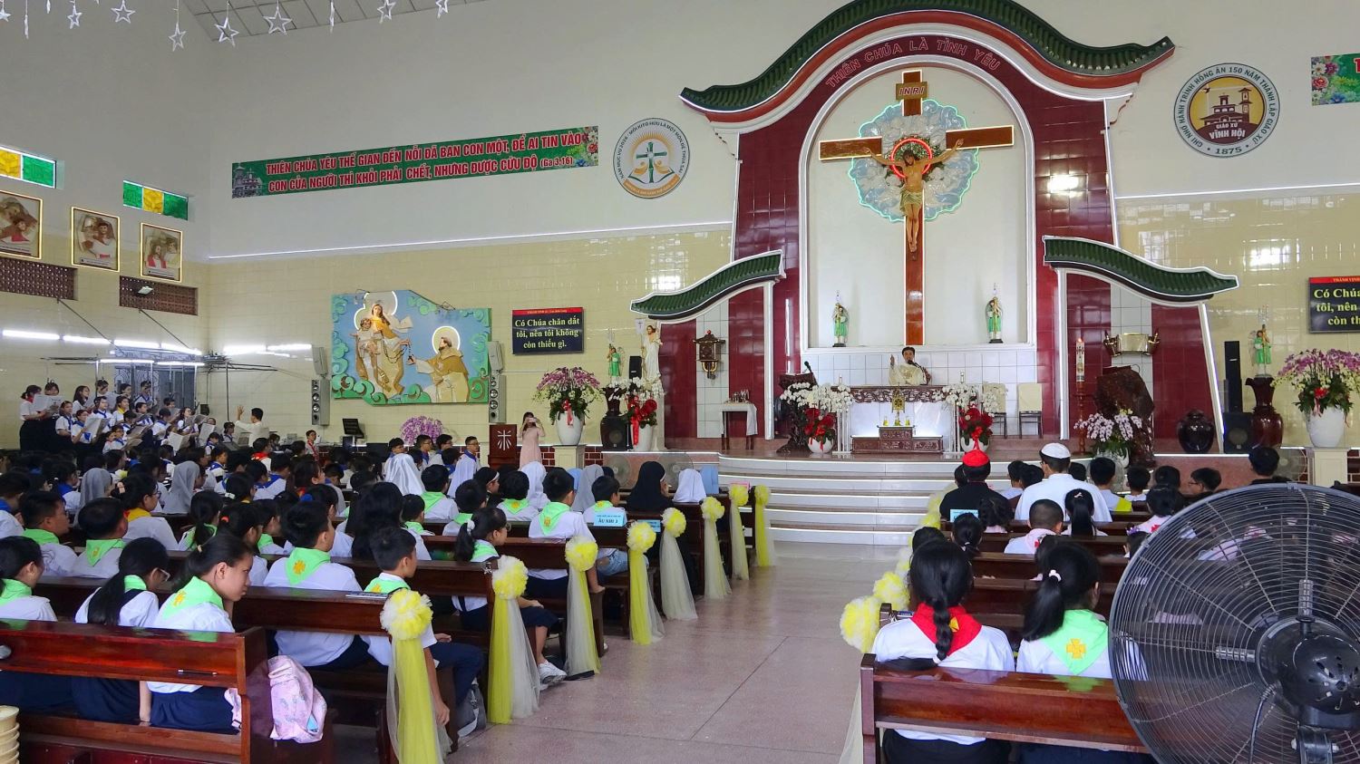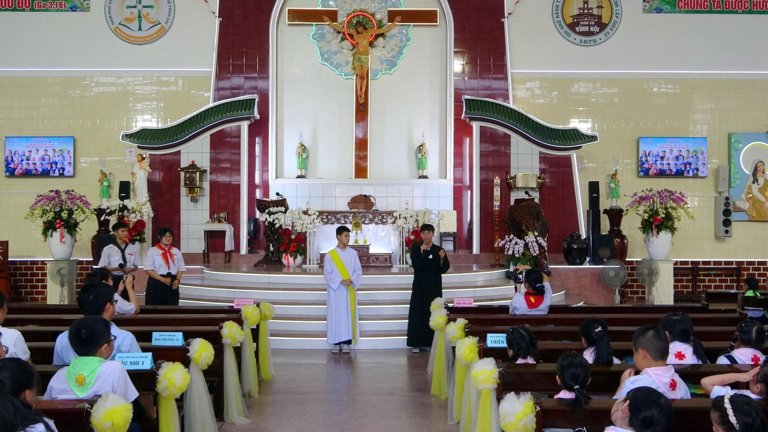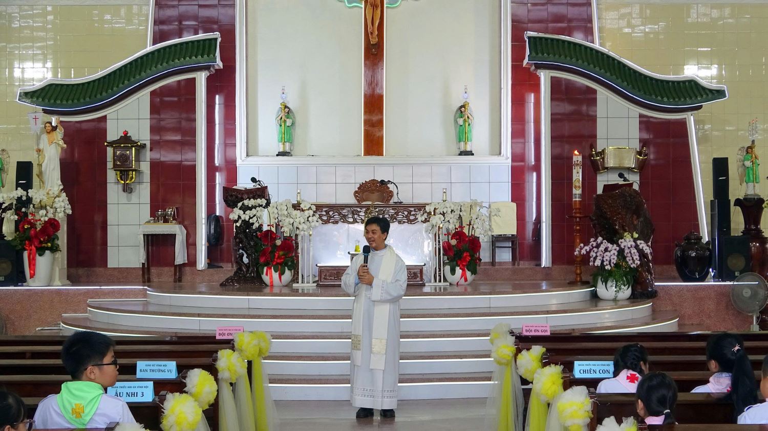 Linh mục phó xứ Anphôngsô ví các linh mục, tu sĩ như những “bông hoa tỏa hương” trong lòng Giáo Hội, đồng thời khích lệ các em biết lắng nghe và nhận ra tiếng gọi riêng của mình. Bầu khí ngày hội trở nên sôi động khi cộng đoàn cùng hô vang khẩu hiệu, khơi dậy tinh thần hăng say nơi các em thiếu nhi.