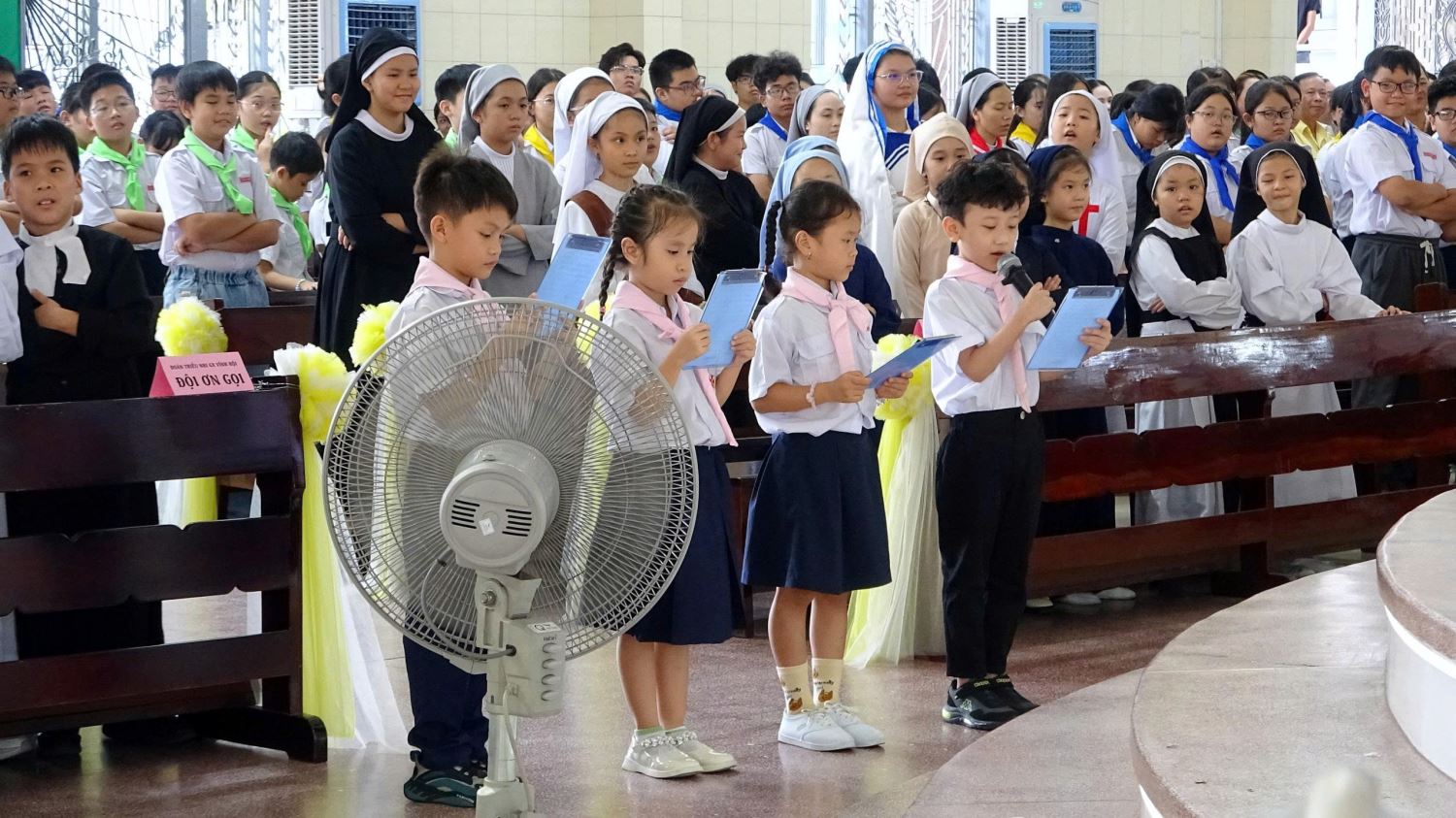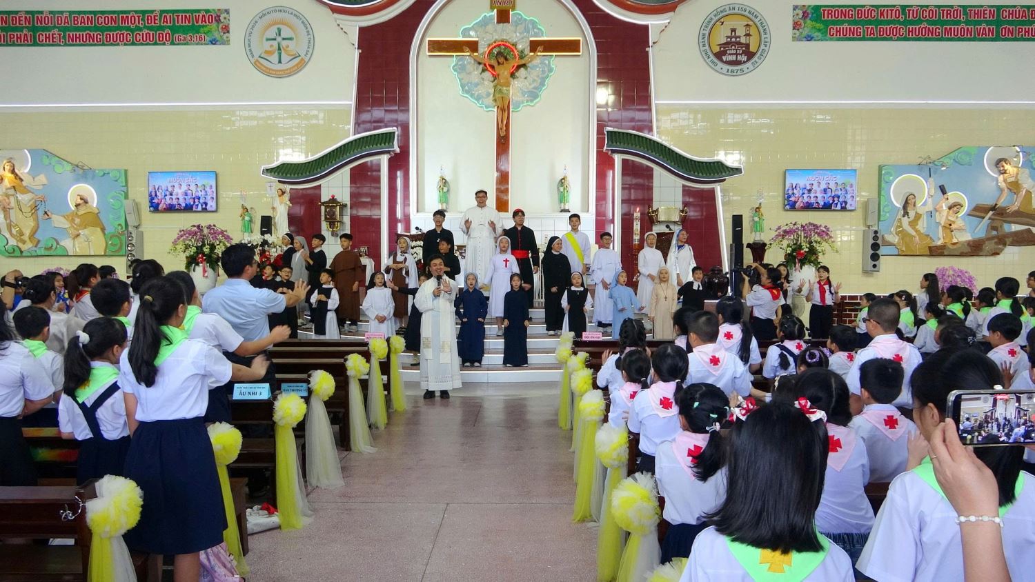Qua những hình ảnh quen thuộc trong Tin Mừng như việc Chúa Giêsu kêu gọi các tông đồ, sai bảy mươi hai môn đệ, hay câu chuyện cậu bé dâng năm chiếc bánh và hai con cá, cha chánh xứ nhấn mạnh: Thiên Chúa luôn cần sự cộng tác của con người, dù là những đóng góp nhỏ bé nhất. Chiếc áo dòng các em khoác lên hôm nay không chỉ là trang phục, mà còn khơi lên ước mơ dấn thân theo Chúa trong tâm hồn các em.