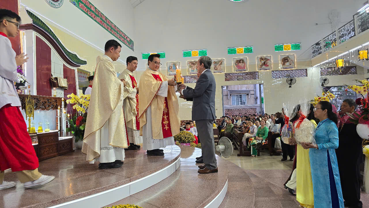 Đồng tế với ngài có linh mục Anphongsô Nguyễn Hoàng Ngọc Anh, linh mục Phanxicô Xaviê Nguyễn Phước Chân Lý, SVD, linh mục Phaolô, và linh mục Giuse Nguyễn Đức Dũng. Tham dự Thánh lễ có đông đảo giáo dân trong giáo xứ.