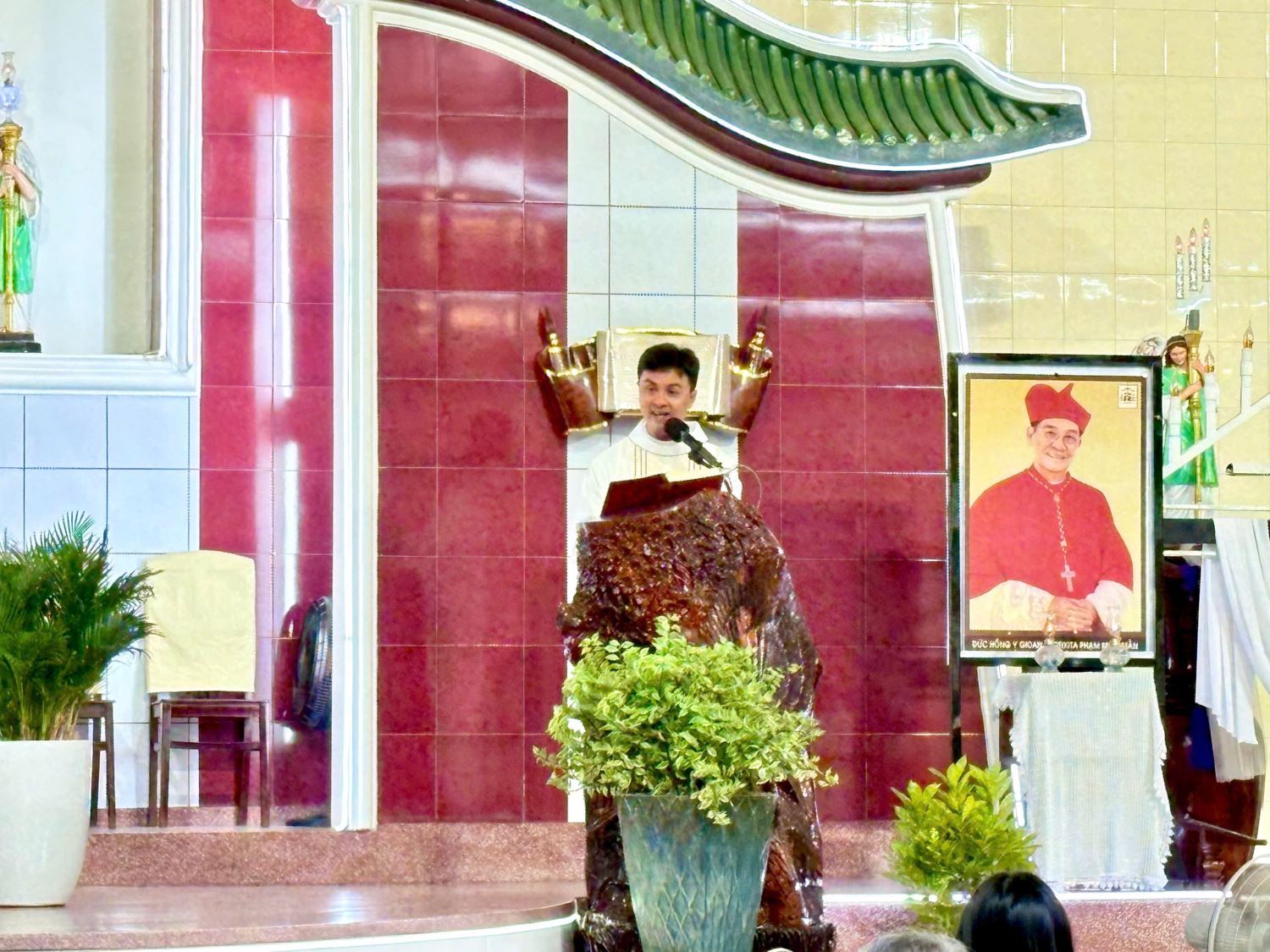 Trước khi kết thúc Thánh lễ, cộng đoàn dành một khoảnh khắc lắng đọng khi di ảnh Đức Hồng Y Gioan Baotixita Phạm Minh Mẫn, nguyên Tổng Giám mục Tổng Giáo phận Sài Gòn, được đặt trang trọng tại cung thánh. Trong niềm xúc động, cộng đoàn hiệp ý dâng một kinh Lạy Cha và một kinh Tin Kính, cầu nguyện cho Đức Hồng Y và bày tỏ sự tiếc thương cùng Tổng Giáo phận Sài Gòn.
