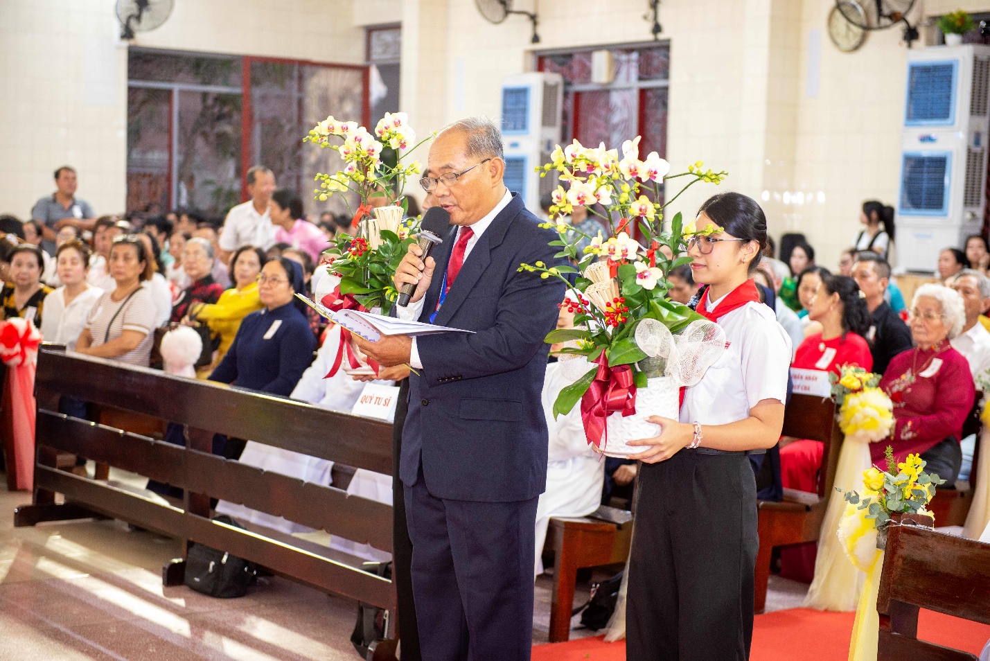 Kết thúc Thánh lễ, đại diện HĐMVGX dâng hoa và lời tri ân Đức Tổng Giuse. Đức Tổng thân tình gửi lời chúc mừng bổn mạng, ban phép lành cho cộng đoàn và khích lệ mọi người tiếp tục bước đi trong hiệp nhất, yêu thương và làm chứng cho Tin Mừng bằng đời sống phục vụ.