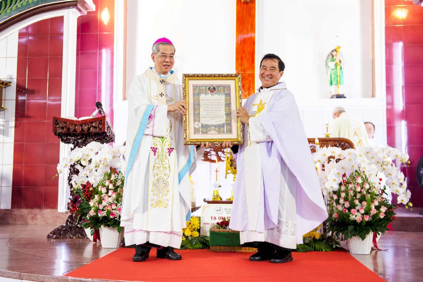 Trong thánh lễ đã có một nghi thức trang nghiêm và đầy xúc động: đó là long trọng nhận Phép lành Toà Thánh do Đức Thánh Cha Leo XIV ban cho toàn thể giáo xứ Vĩnh Hội nhân dịp 150 năm thành lập.