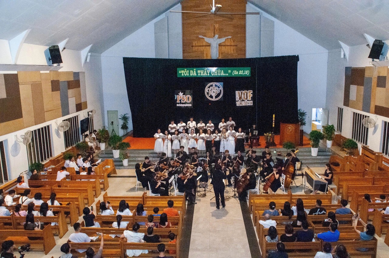 Đêm hòa nhạc quy tụ dàn hợp xướng và các ca viên của giáo xứ, với sự kết hợp hài hòa giữa âm nhạc, ánh sáng và những câu chuyện đức tin, tạo nên một không gian vừa lắng đọng vừa tràn đầy sức sống. Từ những bản thánh ca sâu lắng đến những khúc ca hân hoan mừng Chúa Phục Sinh, tất cả hòa quyện thành lời chứng sống động về tình yêu không bao giờ tắt.