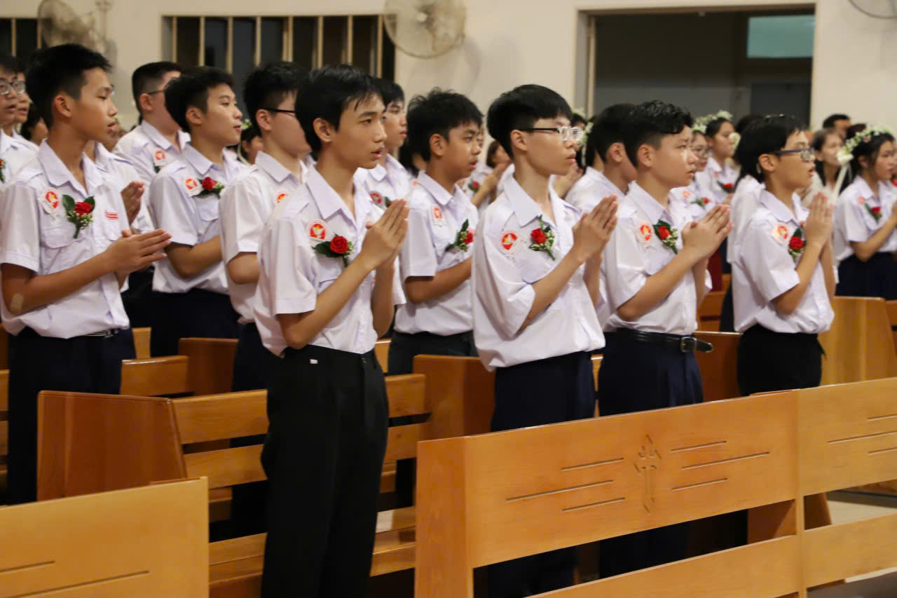 Trong bầu khí trang nghiêm, 57 thụ nhân cùng cha mẹ đỡ đầu sốt sắng tiến lên lãnh nhận ấn tín ơn Chúa Thánh Thần. Từ đây, với ơn thiêng của Ngôi Ba Thiên Chúa, các em được mời gọi mạnh mẽ sống đức tin và can đảm làm chứng cho Chúa trong môi trường sống hằng ngày.
