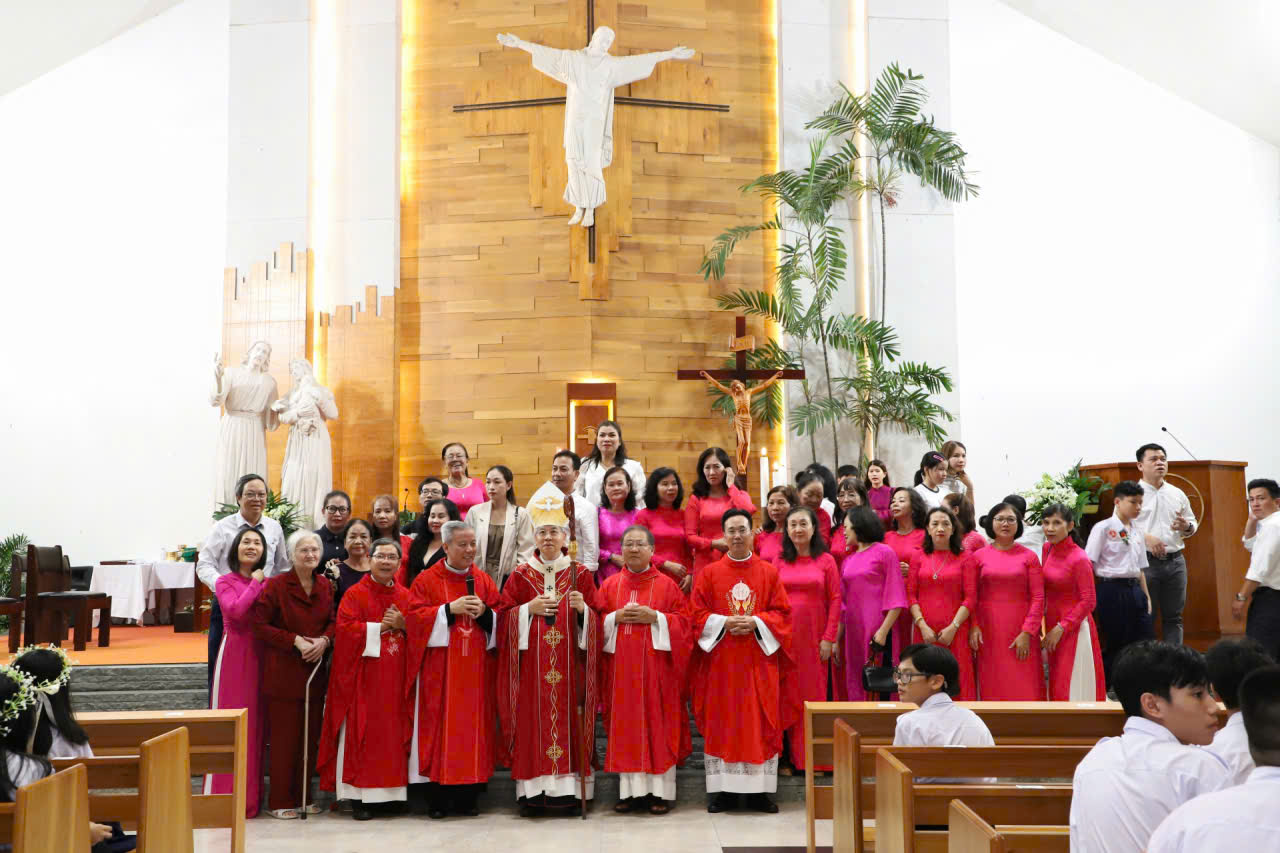 Thánh lễ kết thúc lúc 19g30 cùng ngày, trong niềm vui tràn đầy ân sủng, được lưu lại qua những tấm hình kỷ niệm chụp chung trước cung thánh.