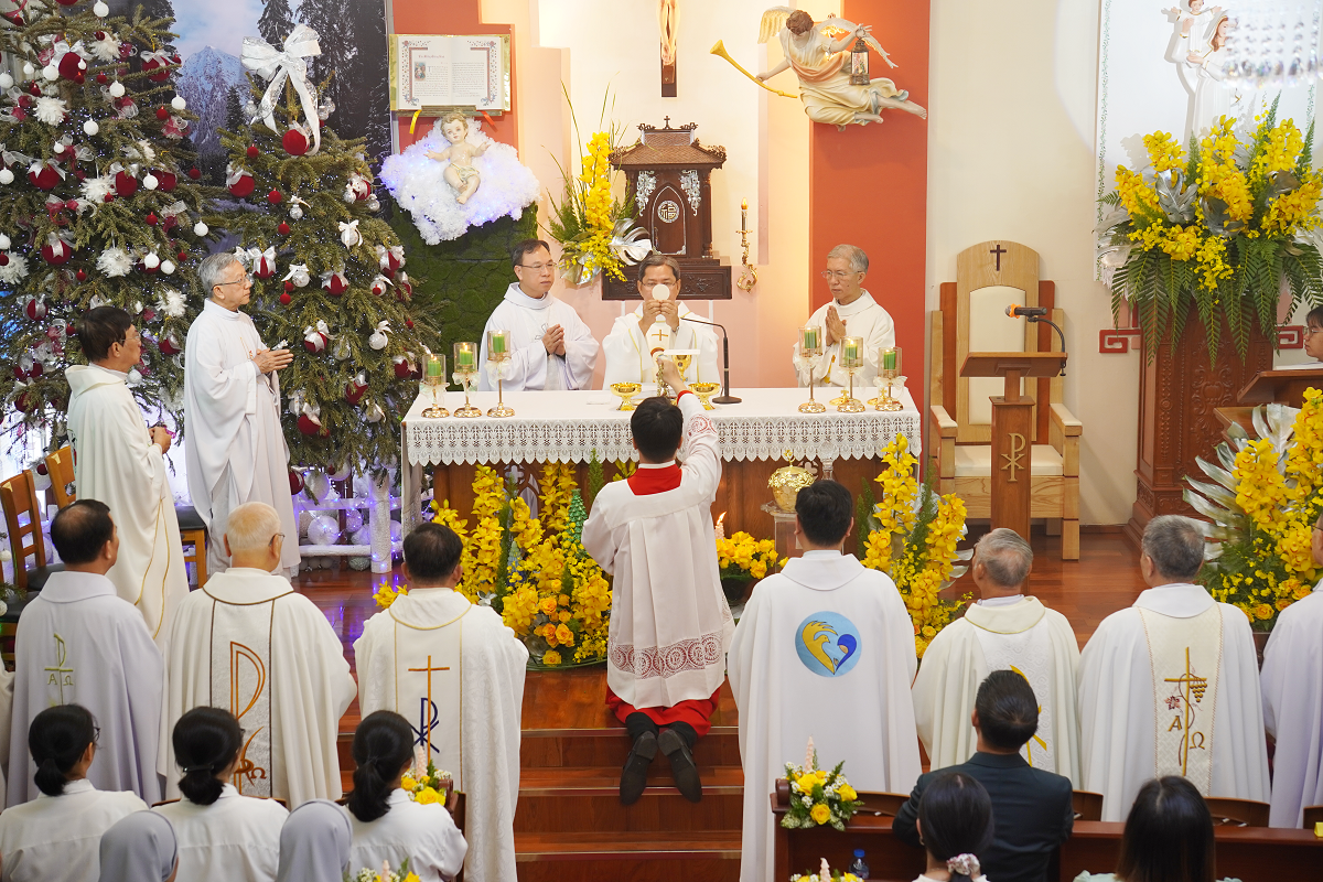 Thánh lễ được cử hành lúc 9g30, thứ Năm, ngày 01.01.2026, tại nhà thờ Vườn Chuối. Đồng tế với ngài có linh mục chánh xứ Giuse Nguyễn Trí Dũng và 17 linh mục.