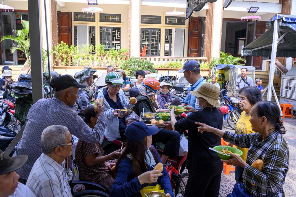 Sau lời nhắn nhủ ân cần và chúc Tết của cha chánh xứ, mọi người cùng tham dự bữa ăn trưa giản dị với bánh mì, cà ri gà và thêm một ly nước giải khát mát lành, khiến bữa ăn trở nên ấm áp, đậm tình sẻ chia. Ngay sau đó, dưới sự hướng dẫn của các thành viên Hội đồng Mục vụ, những phần quà Tết đã lần lượt được trao đến tay anh chị em nghèo và người khuyết tật.