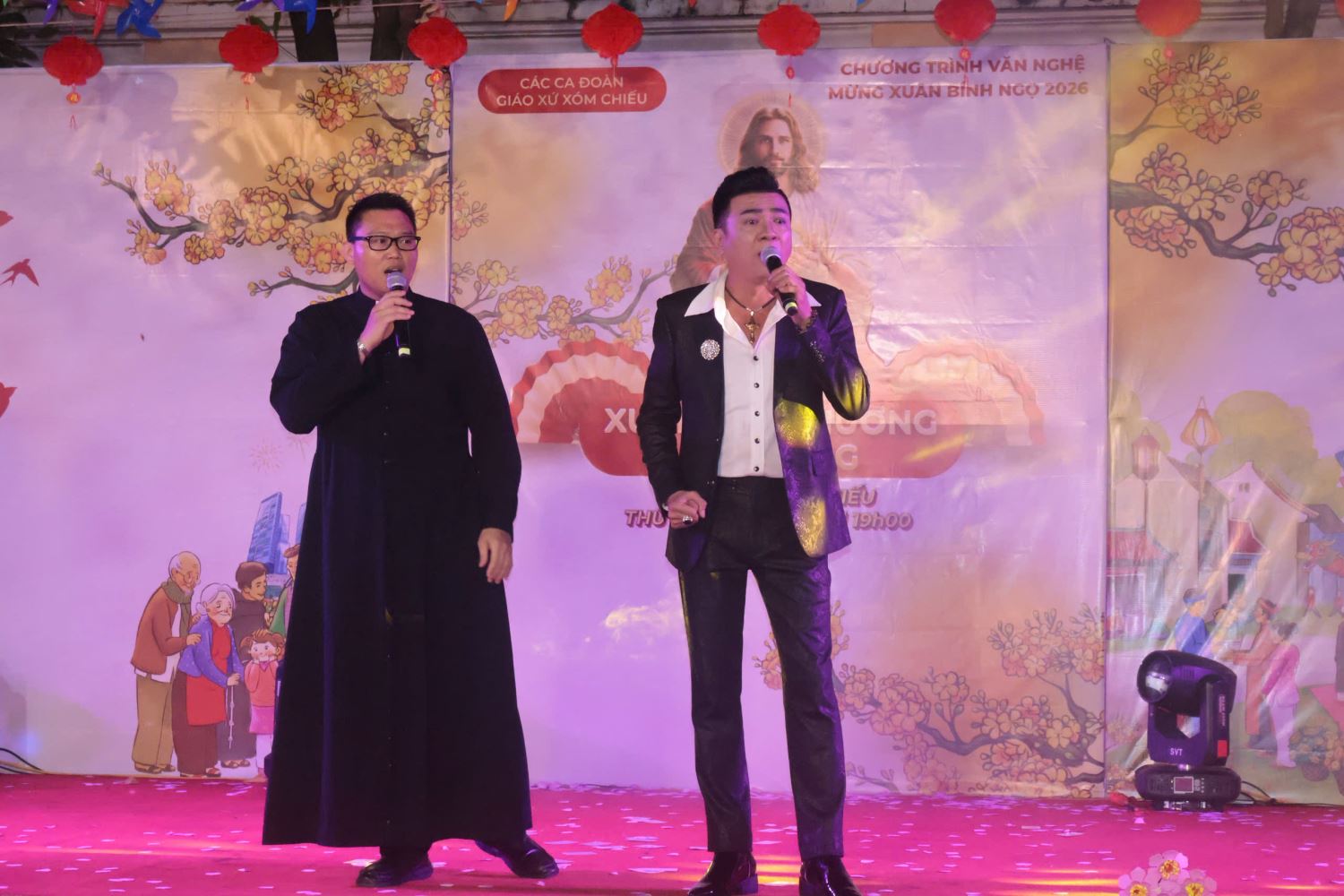 Tiếp theo chương trình, Cha chánh xứ Giuse Maria - Hạt trưởng Hạt Xóm Chiếu lên sân khấu khai mạc đêm nhạc và gửi đến cộng đoàn lời chúc Tết đầu xuân. Trong tâm tình của người cha chung, cha cầu chúc từng gia đình trong giáo xứ luôn được bình an, sức khỏe và dồi dào ân sủng của Thiên Chúa, đồng thời mời gọi cộng đoàn sống yêu thương, hiệp nhất và quảng đại hơn trong năm mới.