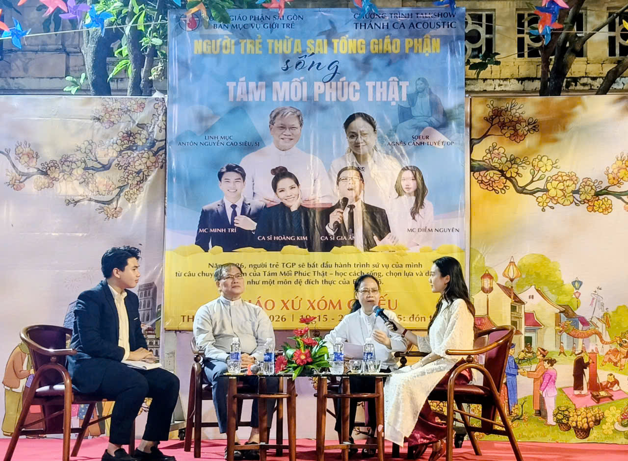 TGPSG -- Tối 31.01.2026, tại giáo xứ Xóm Chiếu, Ban Mục vụ Giới trẻ đã tổ chức Talkshow “Người trẻ thừa sai sống Tám Mối Phúc Thật”, quy tụ đông đảo bạn trẻ tham dự. Chương trình là dịp để người trẻ cùng suy tư về đời sống đức tin và sứ mạng loan báo Tin Mừng theo phương châm: “Mỗi người trẻ một môn đệ - Mỗi môn đệ một thừa sai.”