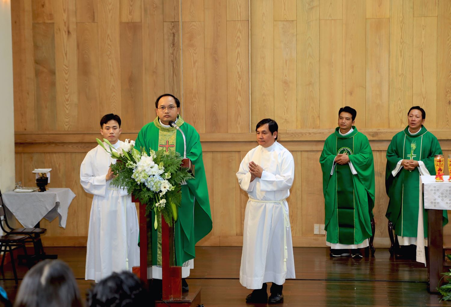 Thánh lễ lúc 10g30 do linh mục Giuse Tạ Huy Hoàng chủ sự, mừng Chúa nhật 26 Thường niên năm C, đồng tế với ba linh mục phó linh hướng DNCG. Nguyện xin Chúa Thánh Thần ban ơn để DNCG thực hiện sứ vụ Loan báo Tin Mừng, làm chứng Chúa bằng đời sống liêm chính, công bằng, bác ái, kết thân với người ngoại giáo.