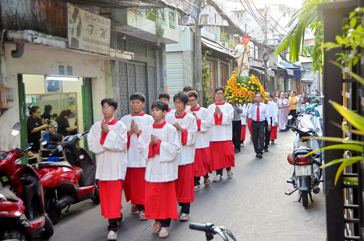 - Kỷ niệm 135 năm thành lập giáo xứ lại một lần nữa nhắc nhở chúng ta về quá trình phục vụ và xây dựng ngôi thánh đường. Đặc biệt là mẹ đáng kính Bengiamin đã hy sinh cuộc đời mình cổ vũ cho nền văn minh tình thương và sự sống qua những hành động thiết thực: thành lập nên nhiều cơ sở để chăm sóc người bệnh và nuôi dưỡng trẻ mồ côi, phục vụ người khuyết tật, phục vụ người neo đơn…