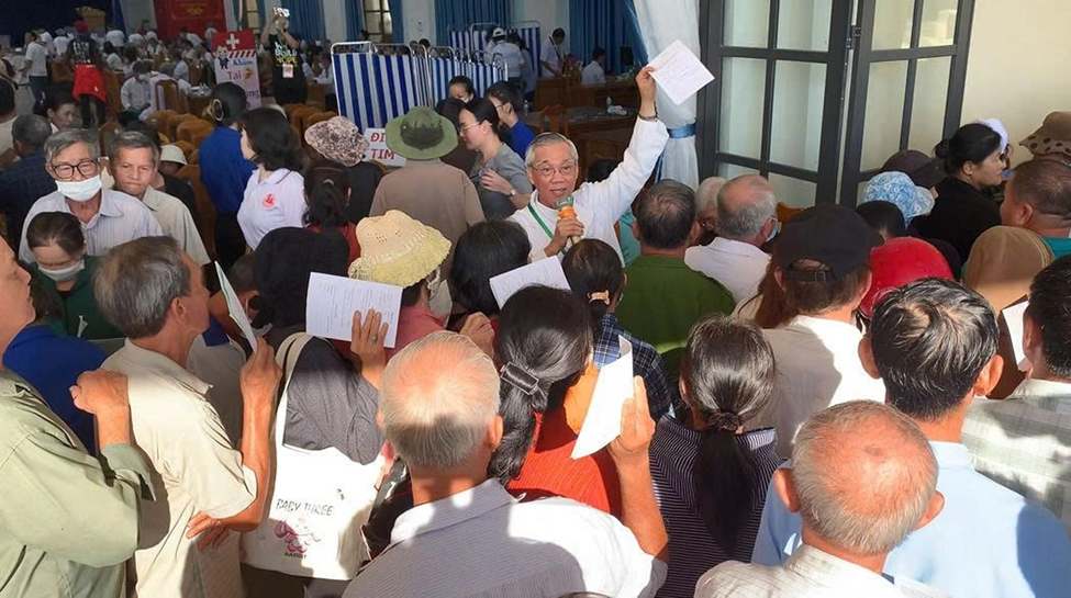 Hơn 1.000 người có hoàn cảnh khó khăn, không phân biệt tuổi tác hay tôn giáo, đã tập trung tại Hội trường Ban Chỉ huy Quân sự phường Tân Uyên để được khám bệnh tổng quát, nhận thuốc miễn phí và nhận phiếu quà trước khi ra về. Không chỉ là hoạt động chăm sóc sức khỏe, chương trình còn mở ra cơ hội gặp gỡ, lắng nghe và sẻ chia, giúp mọi người cảm nhận được tình yêu thương và sự quan tâm của Giáo Hội dành cho con người.