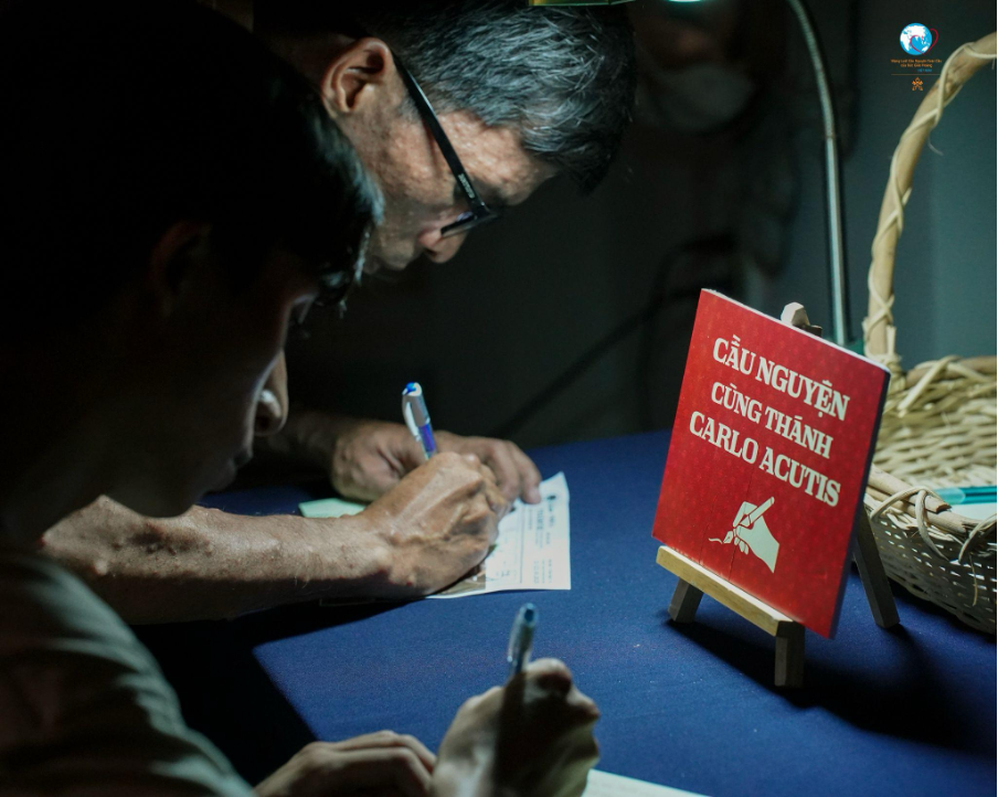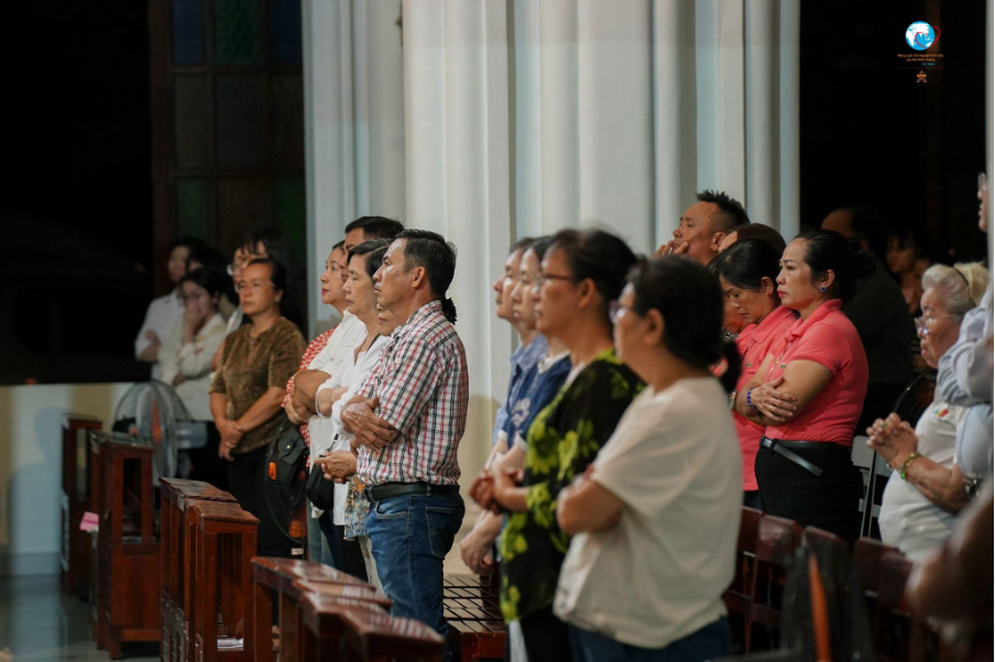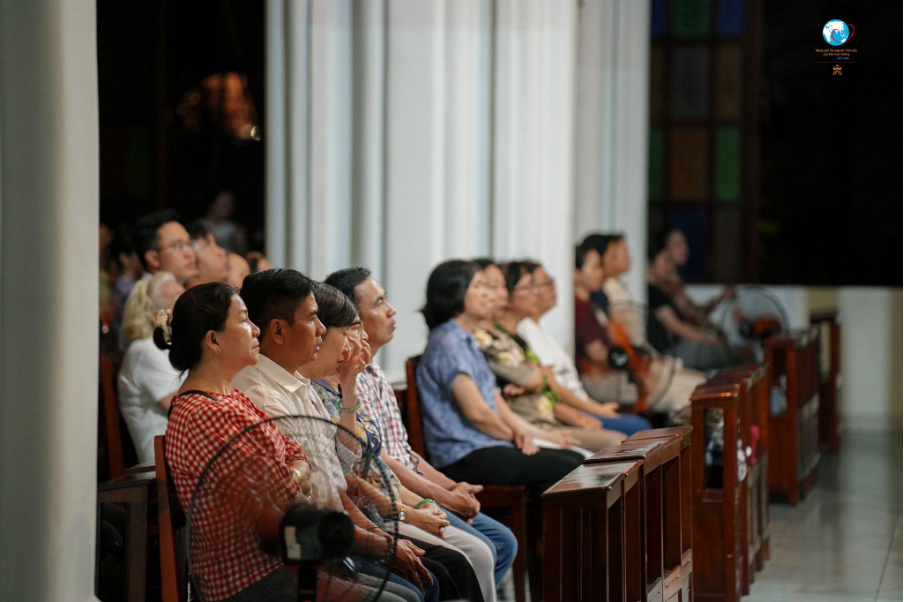Tối 16.10.2025, trong bầu khí sốt mến và đầy tươi vui của Triển lãm Phép lạ Thánh Thể trên thế giới do Thánh Carlo Acutis sưu tầm và biên soạn – cộng đoàn dân Chúa đã cùng nhau tham dự giờ Chầu Thánh Thể chung tại Nhà nguyện cổ Trung tâm Mục vụ TGP. Sài Gòn, do cha Tôma Vũ Ngọc Tín, S.J., Giám đốc Mạng lưới Cầu nguyện Toàn cầu của Đức Giáo hoàng tại Việt Nam, chủ sự. Ca đoàn Lumen đảm trách phần phụng vụ thánh nhạc, góp phần nâng tâm hồn cộng đoàn lên với Chúa Giêsu Thánh Thể.