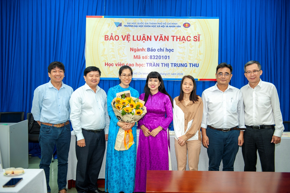 Chiều thứ Năm, ngày 08.01.2026, tại Trường Đại học Khoa học Xã hội và Nhân văn (ĐHQG-HCM), một học viên cao học đã bảo vệ thành công luận văn thạc sĩ với đề tài “Đặc điểm tiếp nhận thông tin tôn giáo của cộng đồng Công giáo trên truyền thông xã hội tại TP.HCM”, do PGS.TS. Nguyễn Đức Lộc hướng dẫn.