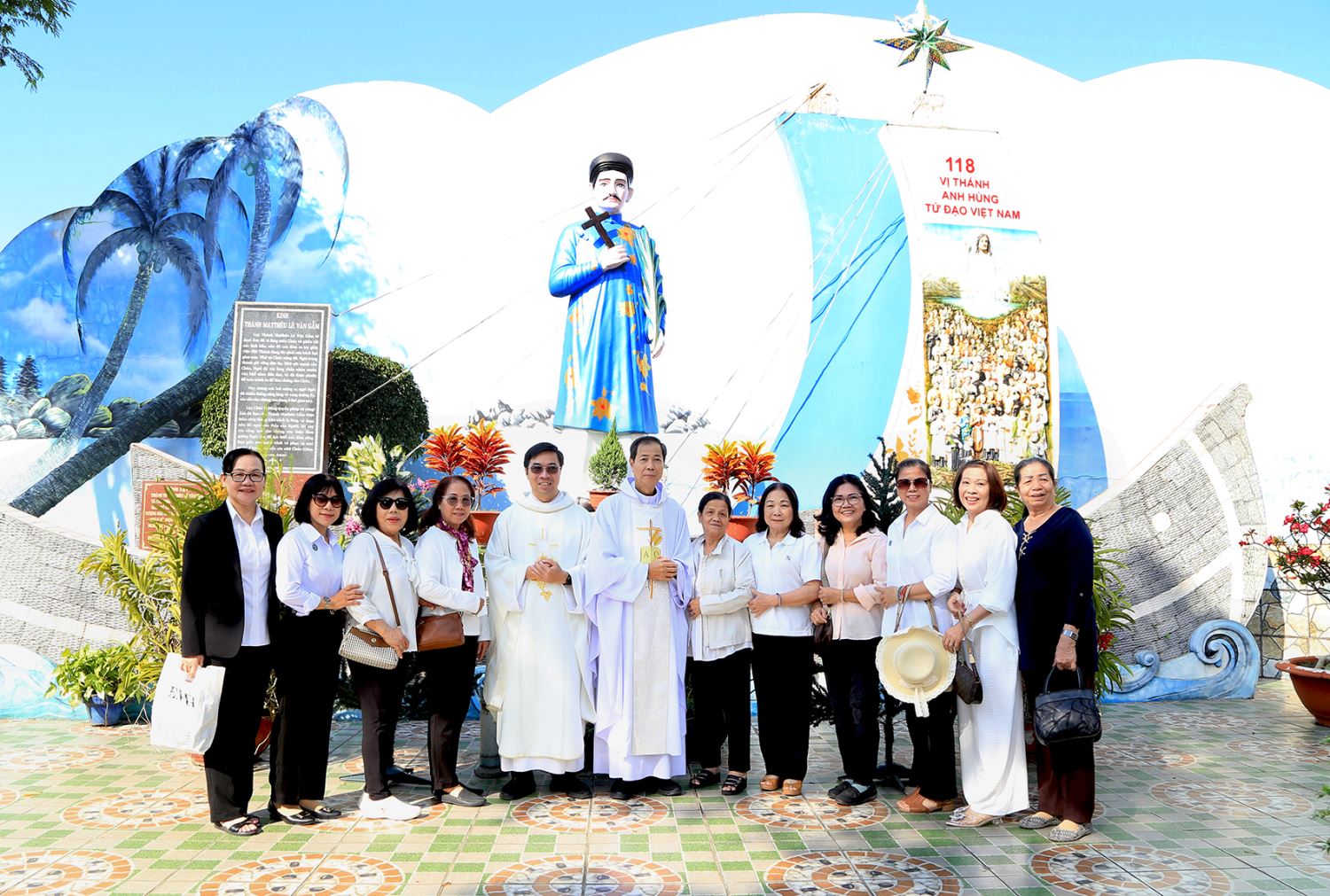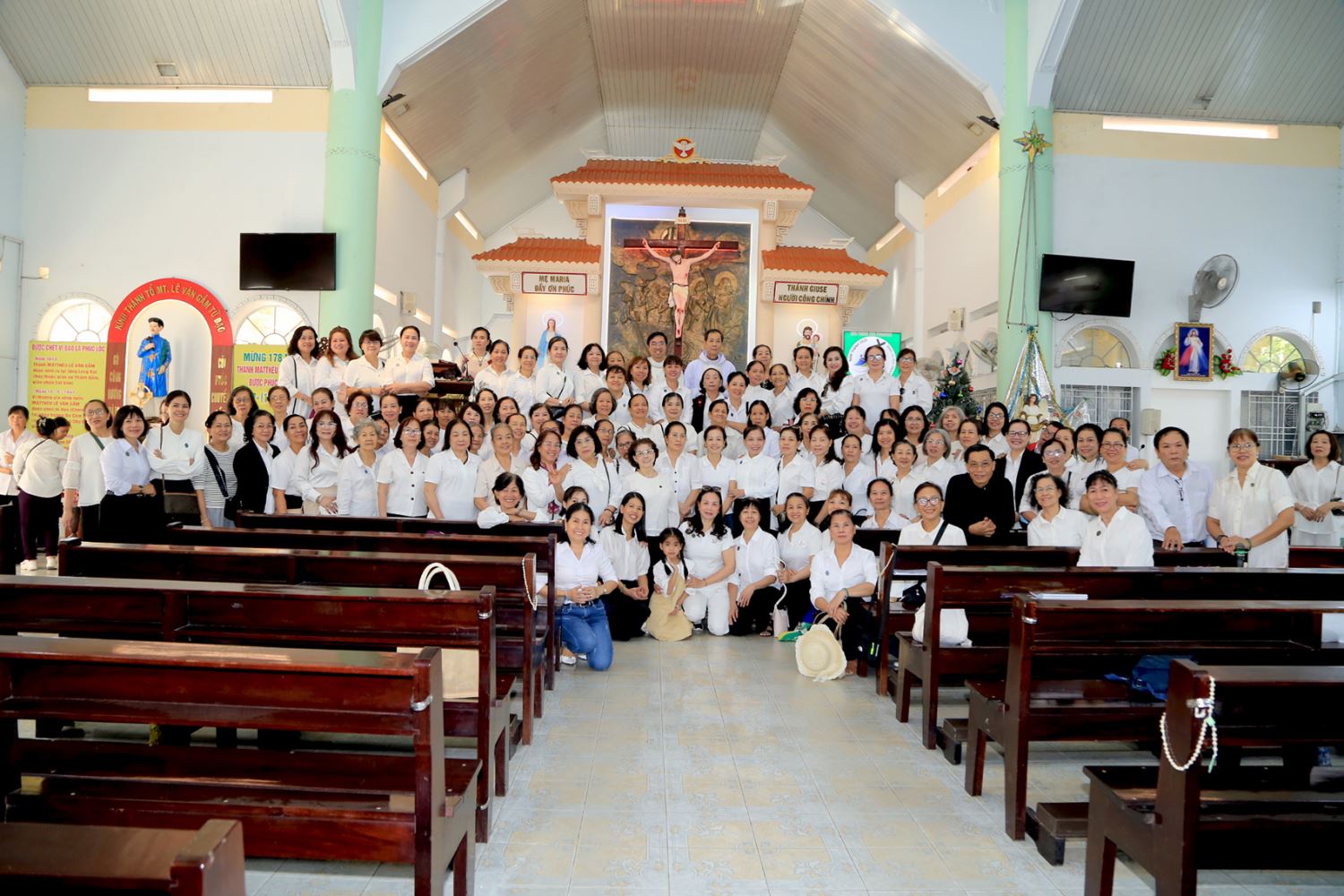 Tham dự hành hương có linh mục chánh xứ Tân Phú Giuse Lê Hoàng và linh mục phó xứ Vinh Sơn Vũ Đức Trọng, cùng 155 hội viên CBMCG.